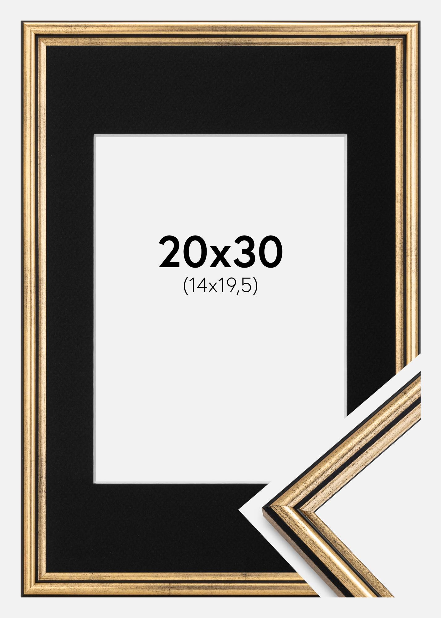 Ram Horndal Guld 20x30 cm - Passepartout Svart 15x21 cm (A5)
