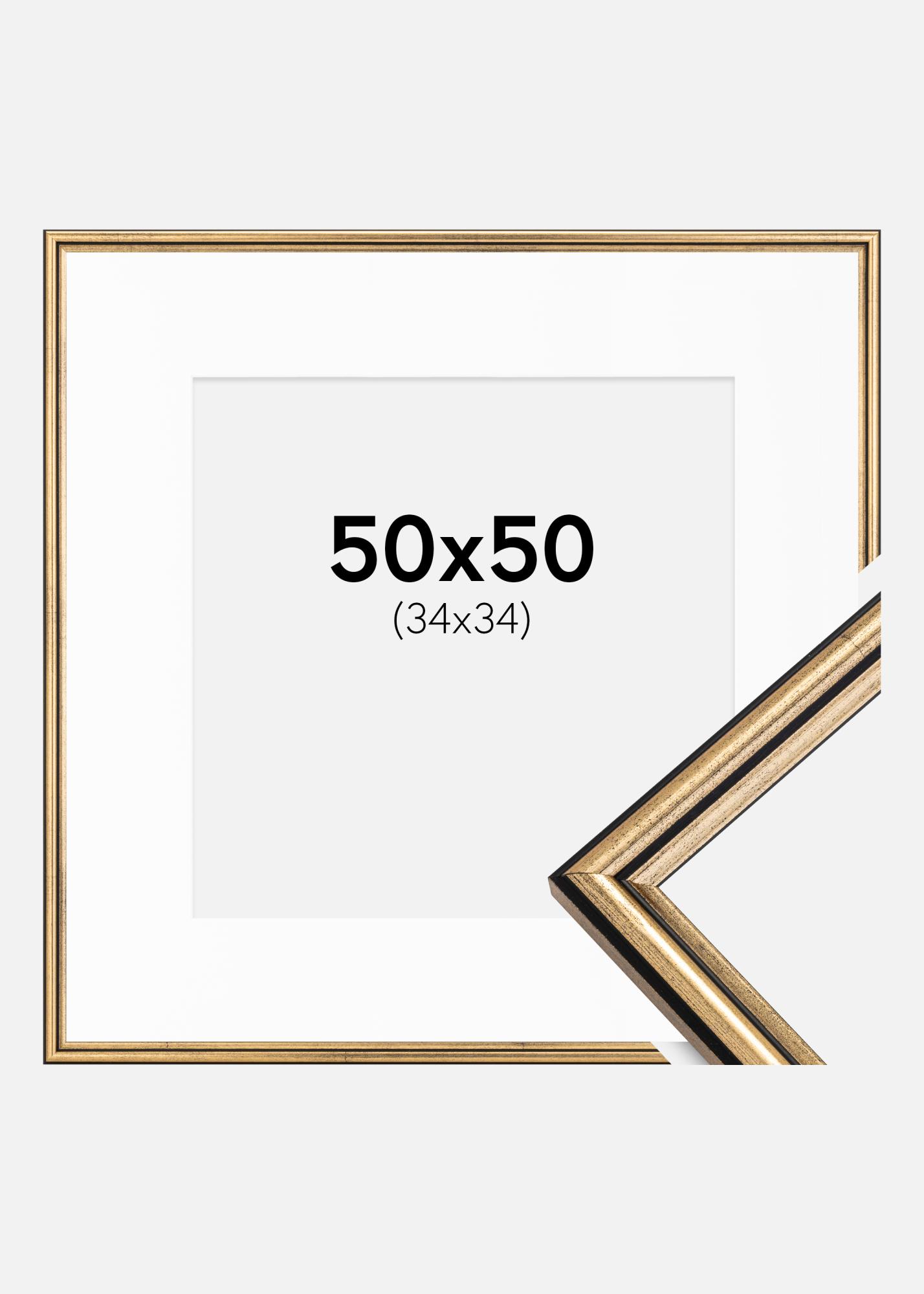 Ram Horndal Guld 50x50 cm - Passepartout Vit 35x35 cm