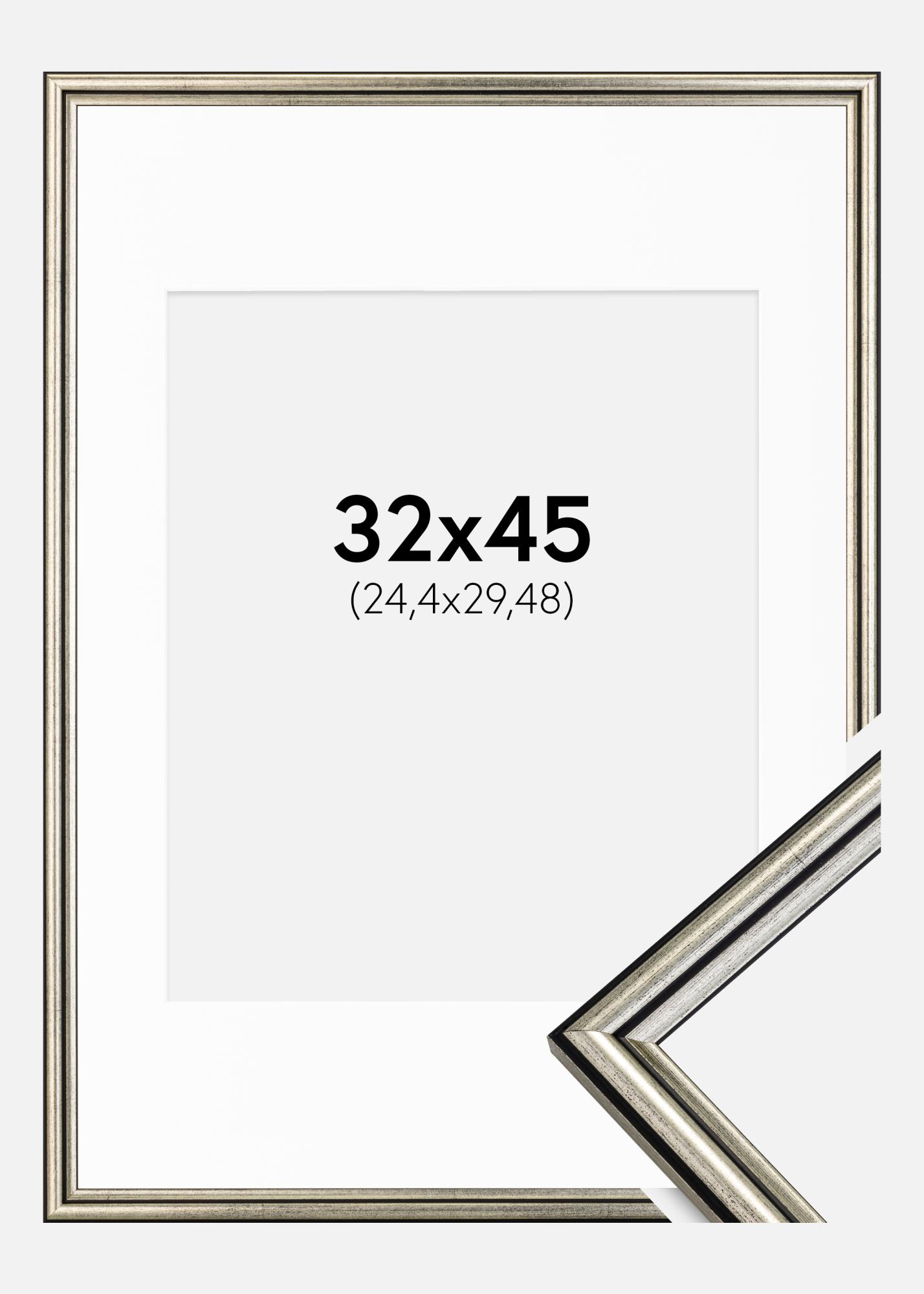 Ram Horndal Silver 32x45 cm - Passepartout Vit 10x12 inches