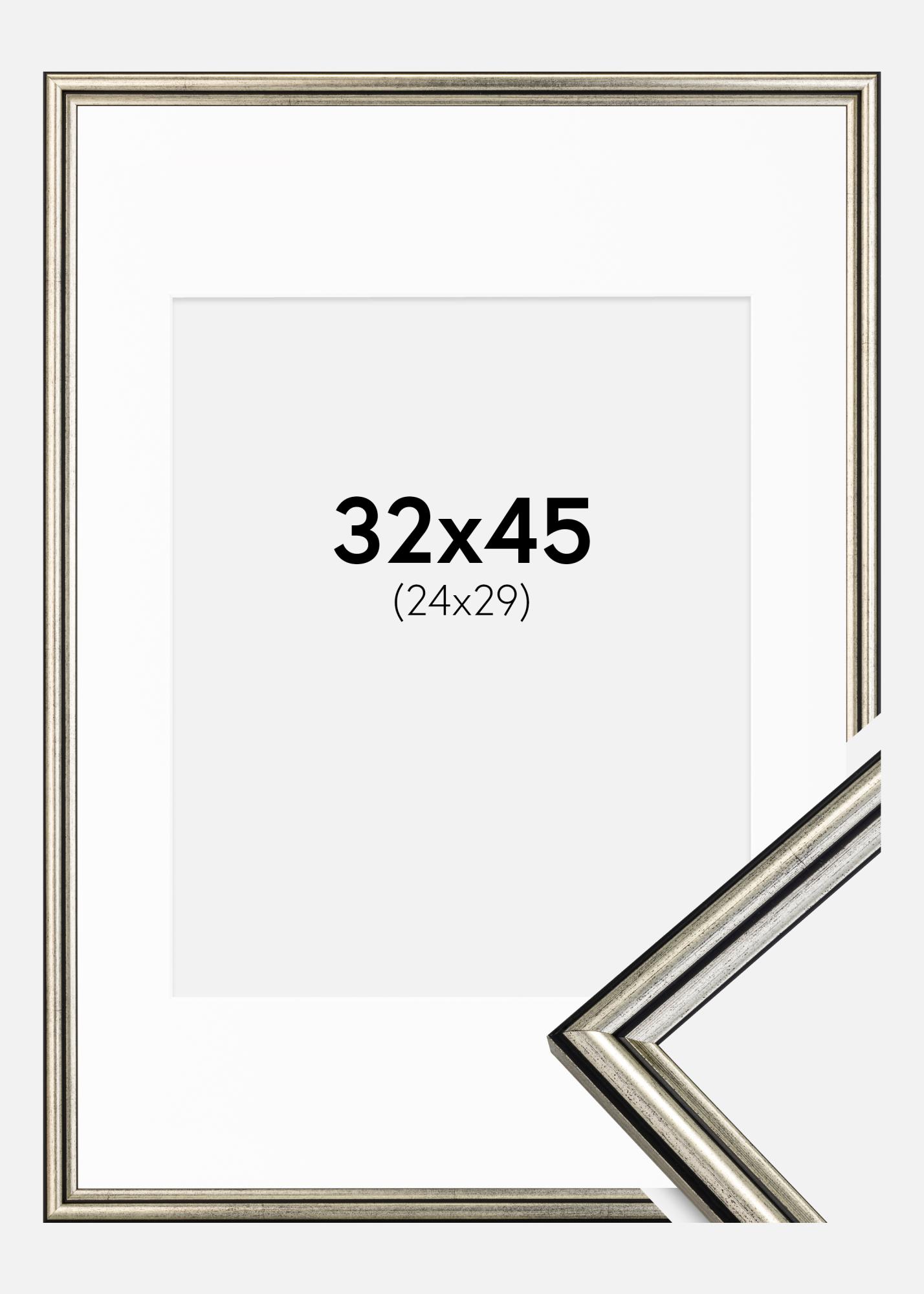 Ram Horndal Silver 32x45 cm - Passepartout Vit 25x30 cm