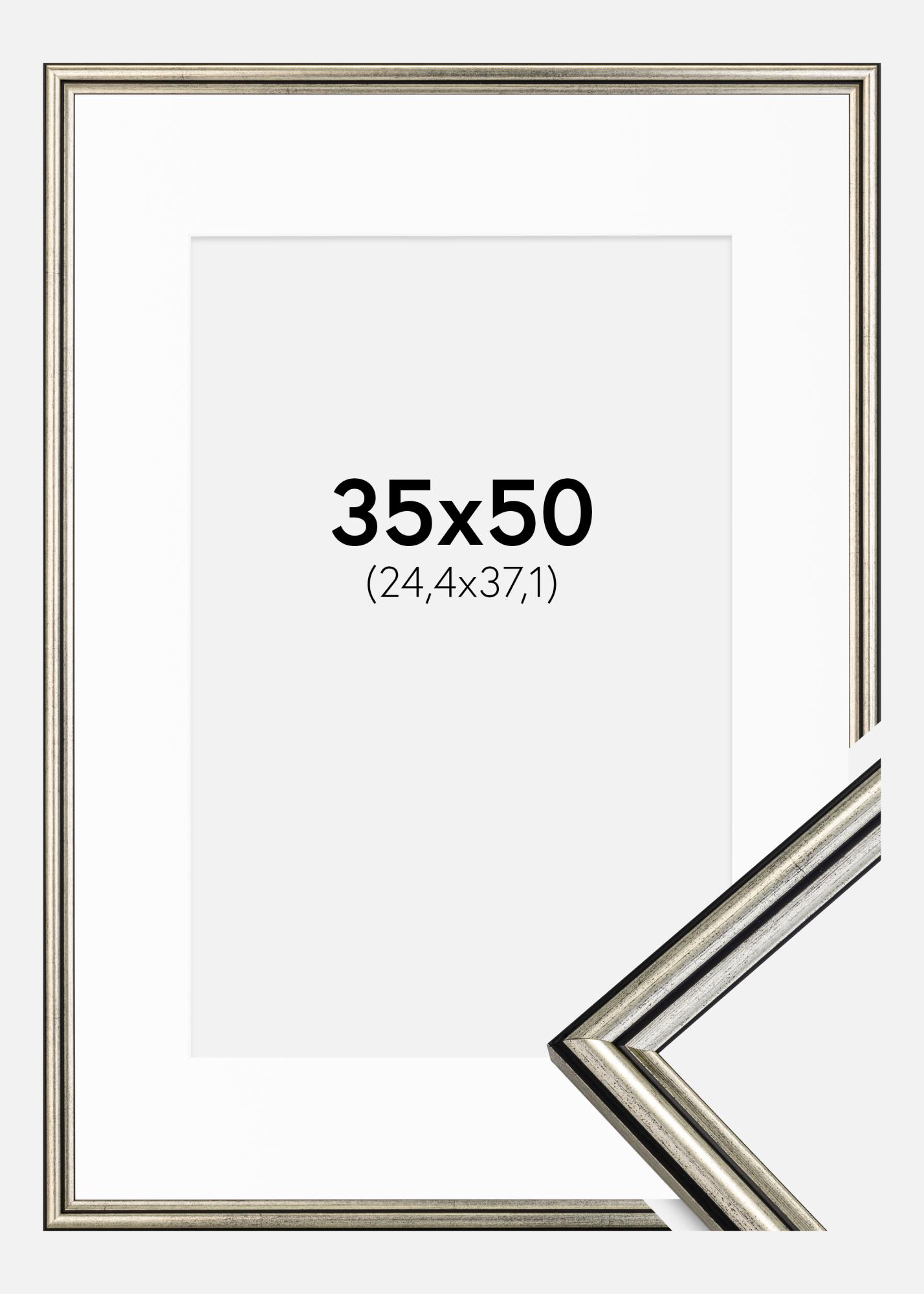 Ram Horndal Silver 35x50 cm - Passepartout Vit 10x15 inches