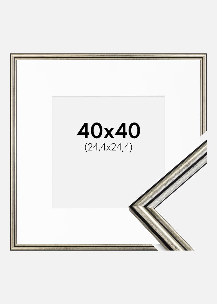 Ram Horndal Silver 40x40 cm - Passepartout Vit 10x10 inches