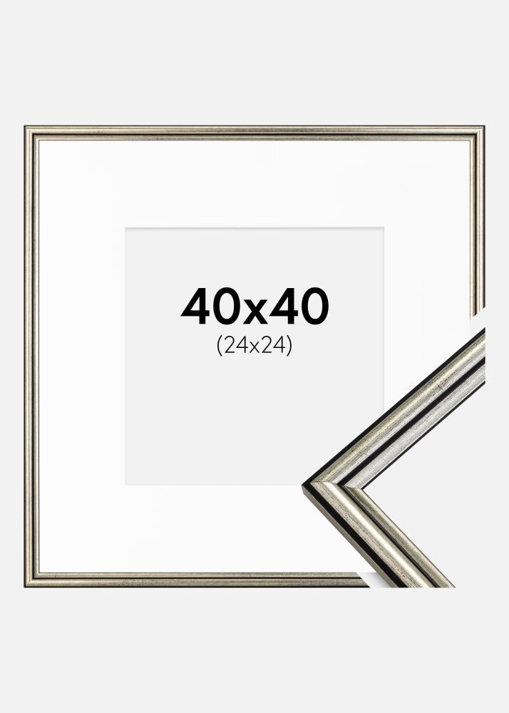 Ram Horndal Silver 40x40 cm - Passepartout Vit 25x25 cm