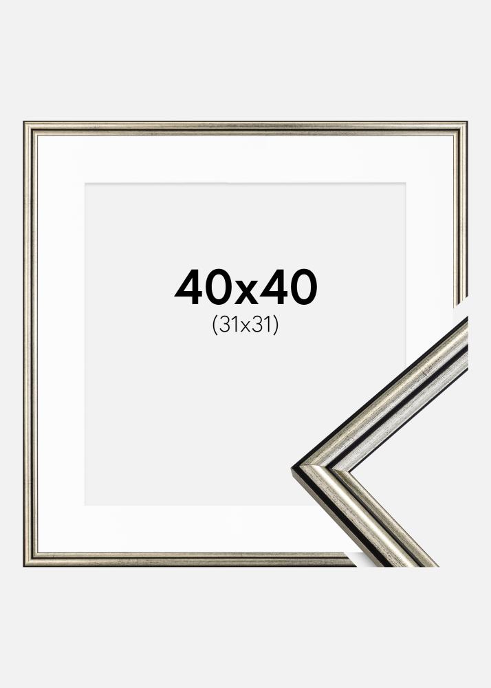 Ram Horndal Silver 40x40 cm - Passepartout Vit 32x32 cm