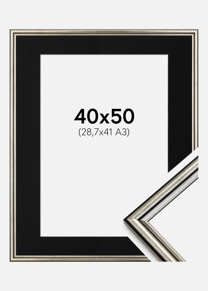 Ram Horndal Silver 40x50 cm - Passepartout Svart 29,7x42 cm (A3)