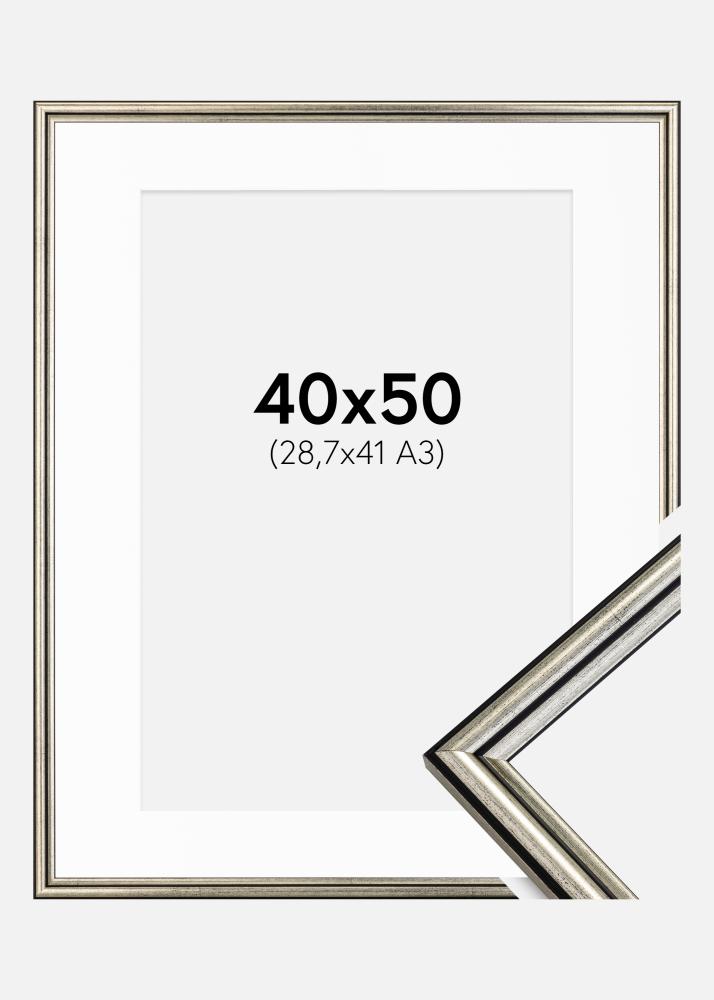 Ram Horndal Silver 40x50 cm - Passepartout Vit 29,7x42 cm (A3)