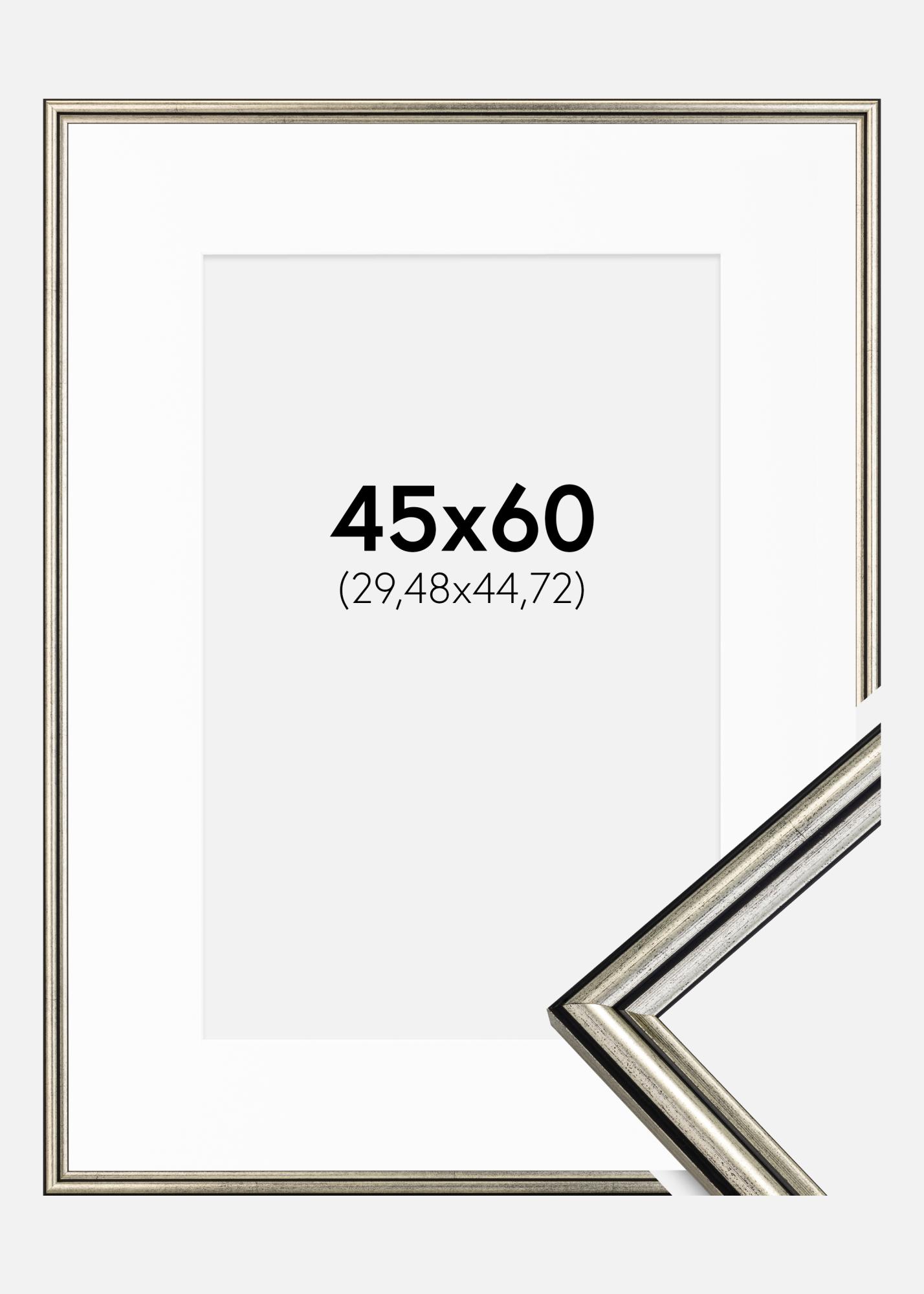 Ram Horndal Silver 45x60 cm - Passepartout Vit 12x18 inches