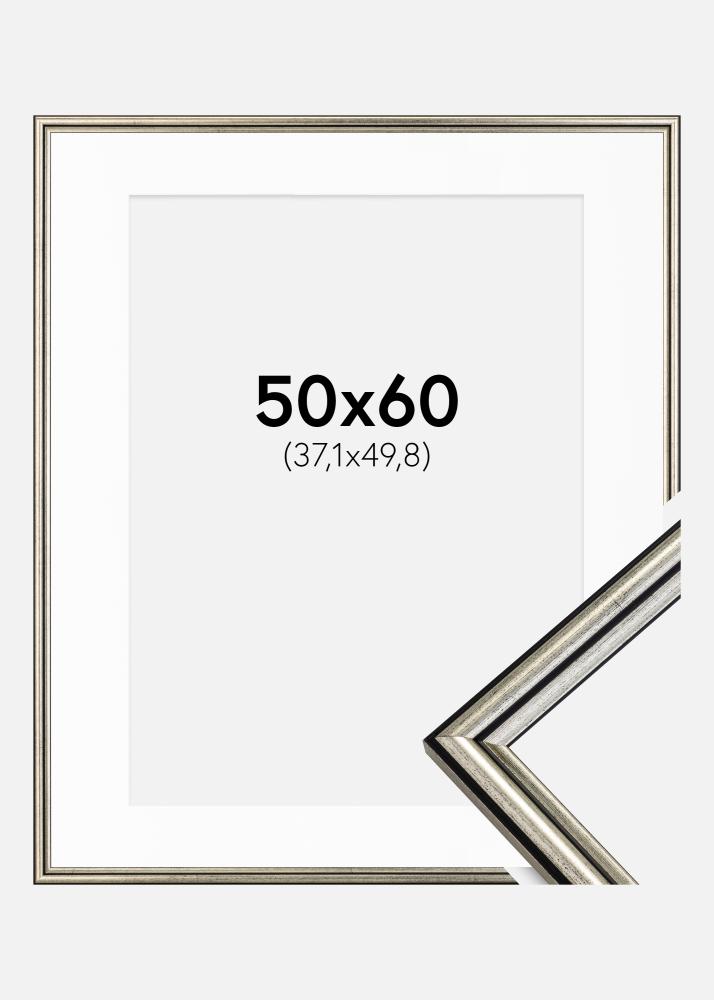 Ram Horndal Silver 50x60 cm - Passepartout Vit 15x20 inches