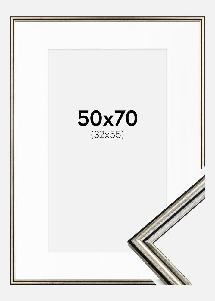 Ram Horndal Silver 50x70 cm - Passepartout Vit 33x56 cm
