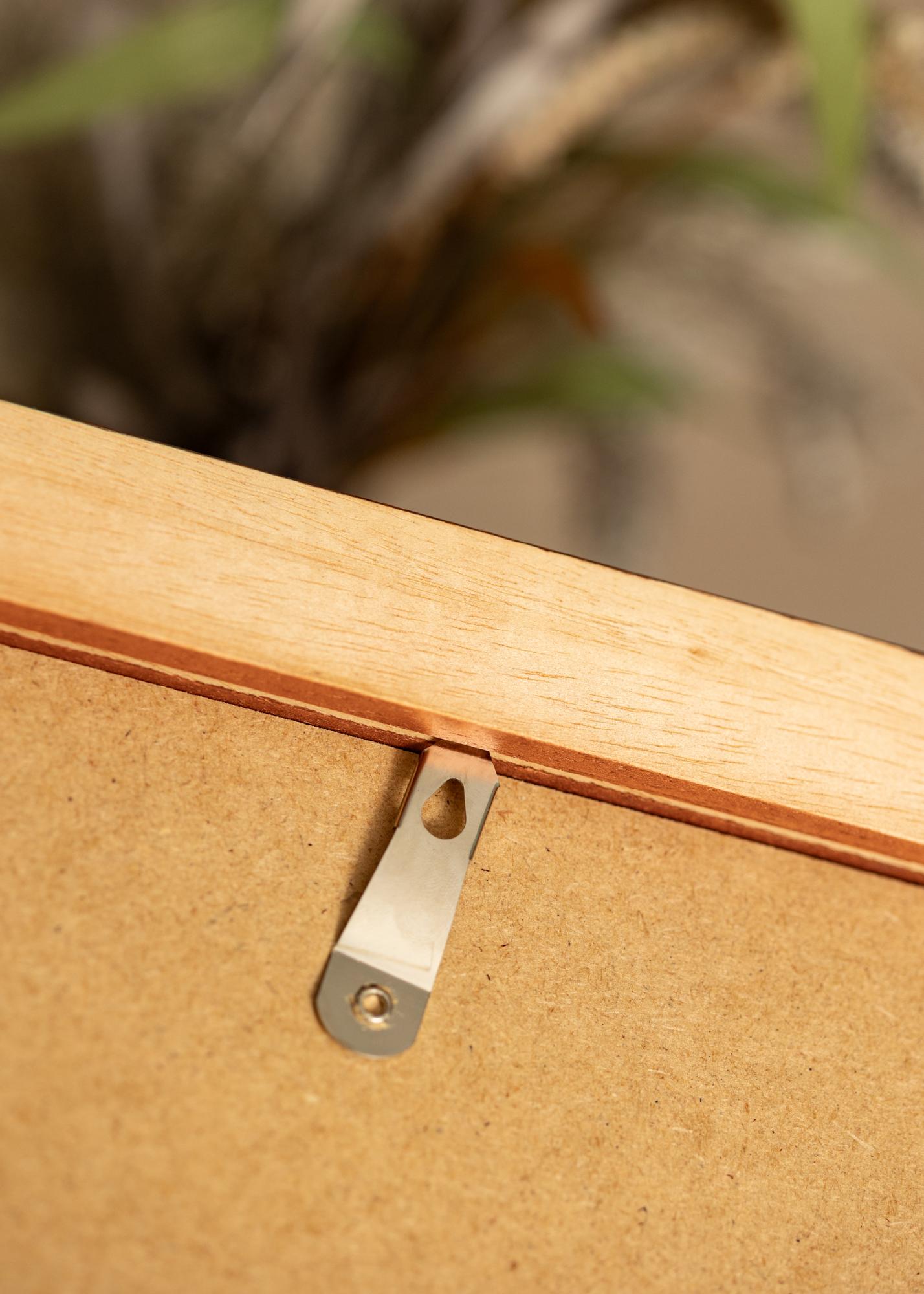 Tavelramen har en generös ramlist som mäter hela 39 mm i bredd, vilket bidrar till en kraftfull närvaro på väggen. Den målade ytan kompletteras av en tydlig trästruktur som ger varje ram ett unikt utseende, samtidigt som den bevarar en klassisk estetik.