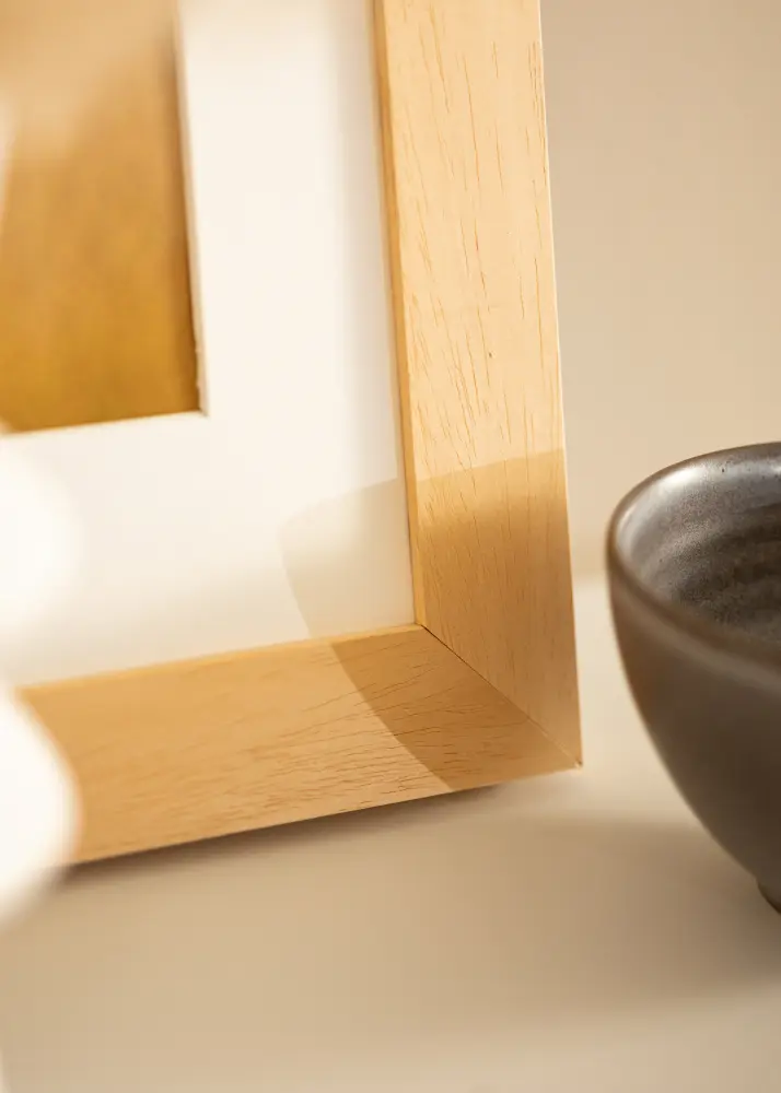 Ramen har en generös ramlist som mäter 39 mm i bredd, vilket ger en robust och distinkt kant till din bildpresentation. Dessutom är ramens djup på 25,5 mm perfekt för att skapa en fin tredimensionell effekt på väggen.