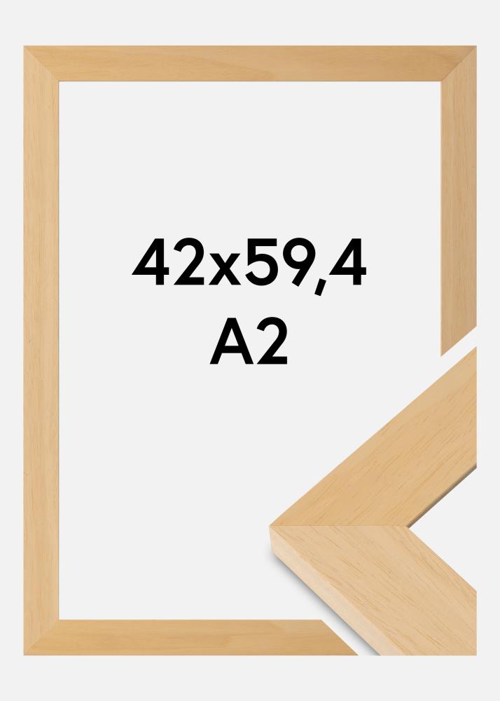 Ge dina affischer och konstverk en naturlig inramning med vår obehandlade träram av ayosträ. Med sina mått på 42x59,4 cm (A2) passar den perfekt för att framhäva dina favoritbilder. Den ljusa trätonen ger ett luftigt och rent intryck i rummet.
