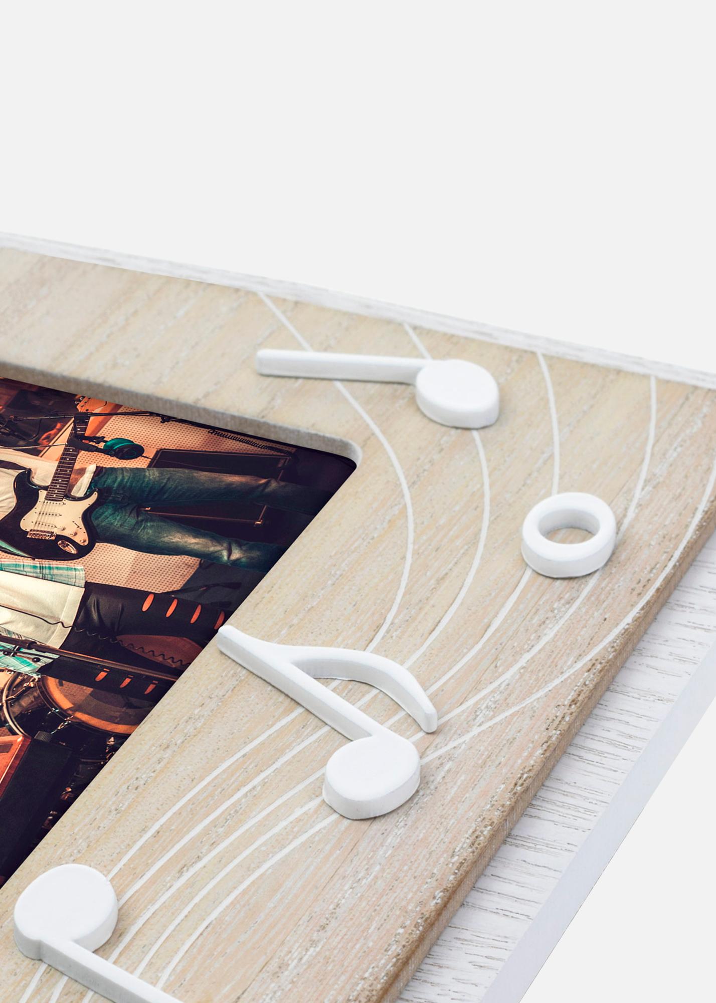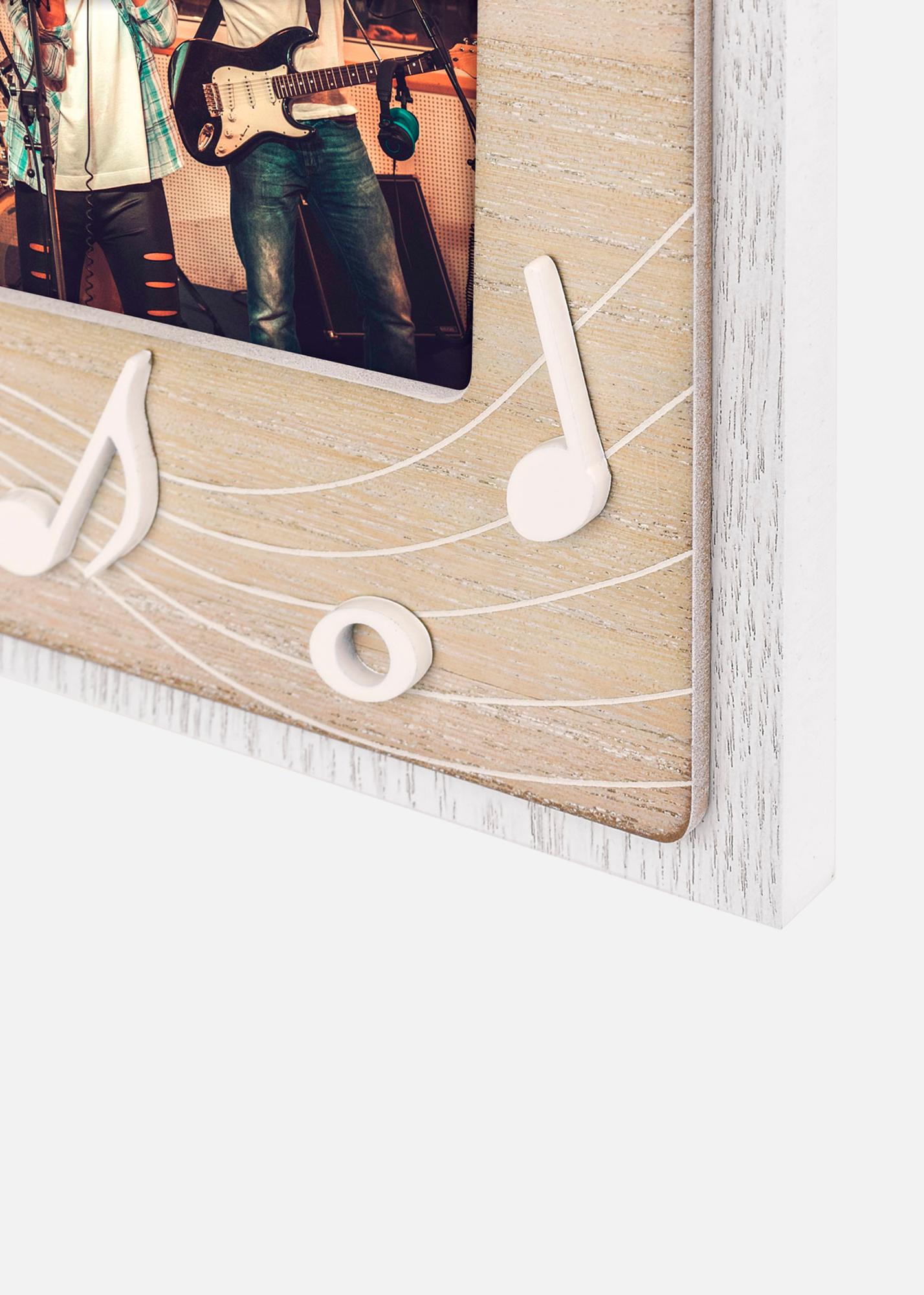 Med måtten 10 x 15 cm passar denna ram perfekt för standardfotografier och kan enkelt bli en del av din väggkollage eller stå som en fristående accent på skrivbordet. Dess distinkta musiktema gör den till en idealisk gåva för alla musikälskare och ger ett extra lager av betydelse till de ögonblick som fångats på bild.