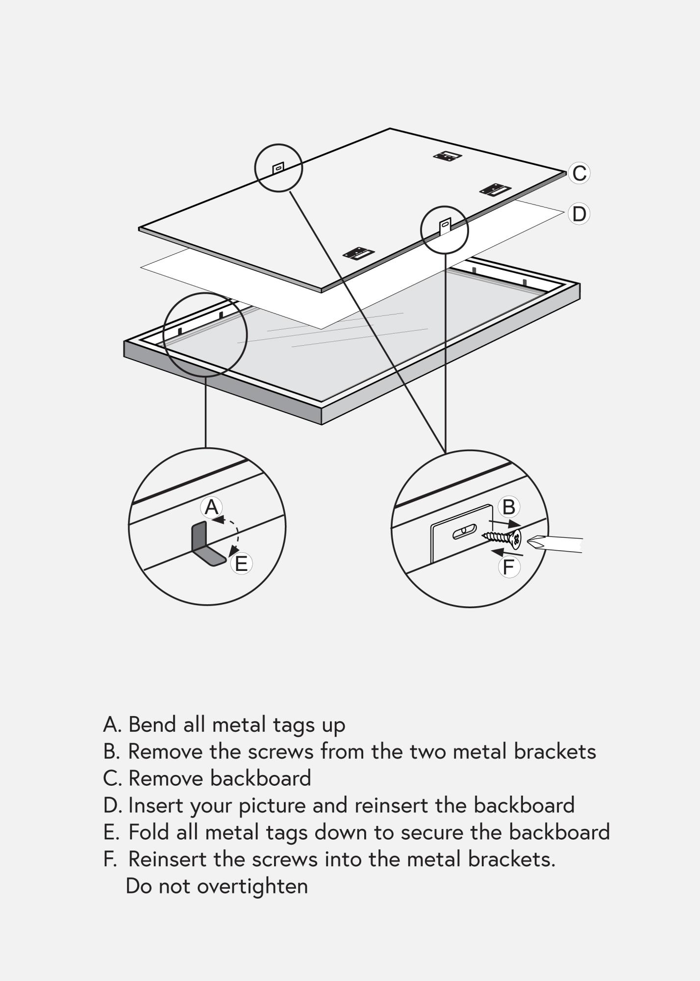 Ramen har ett djup på 18 mm och är utrustad med metallhängare på baksidan, vilket gör det enkelt att hänga den både horisontellt och vertikalt. Detta ger dig flexibilitet att anpassa presentationen efter ditt utrymme och din stil.