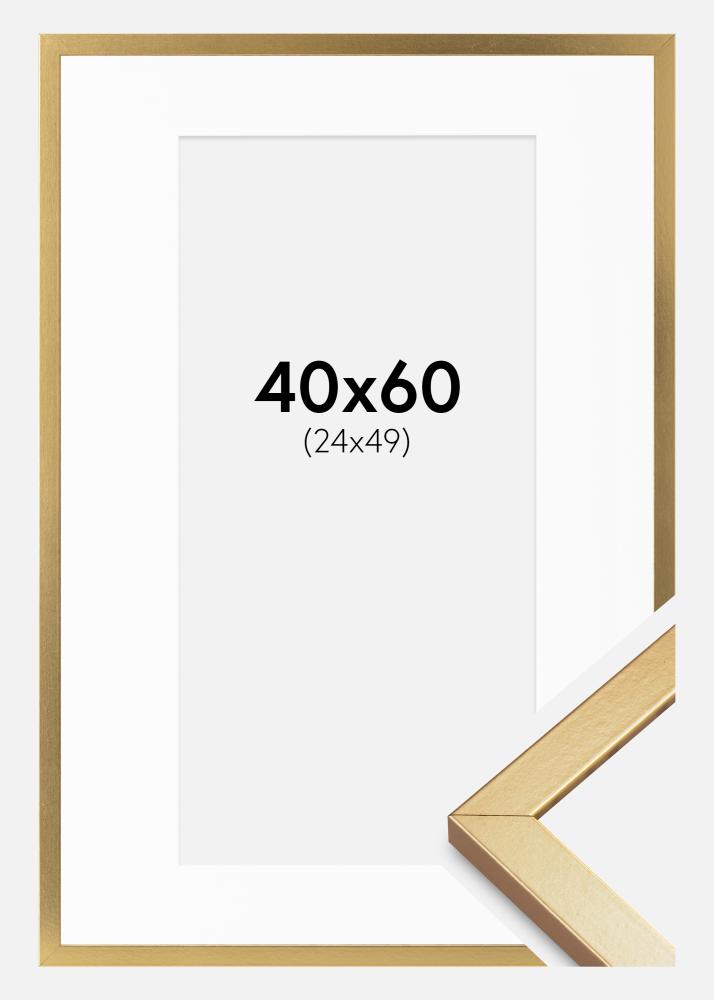 Med yttermått på 42x62 cm blir denna ram en iögonfallande detalj på din vägg, samtidigt som den lyfter fram dina bilder på bästa sätt. Låt denna guldiga ram med passepartout bli en del av ditt hem och ge dina bilder den uppmärksamhet de förtjänar.