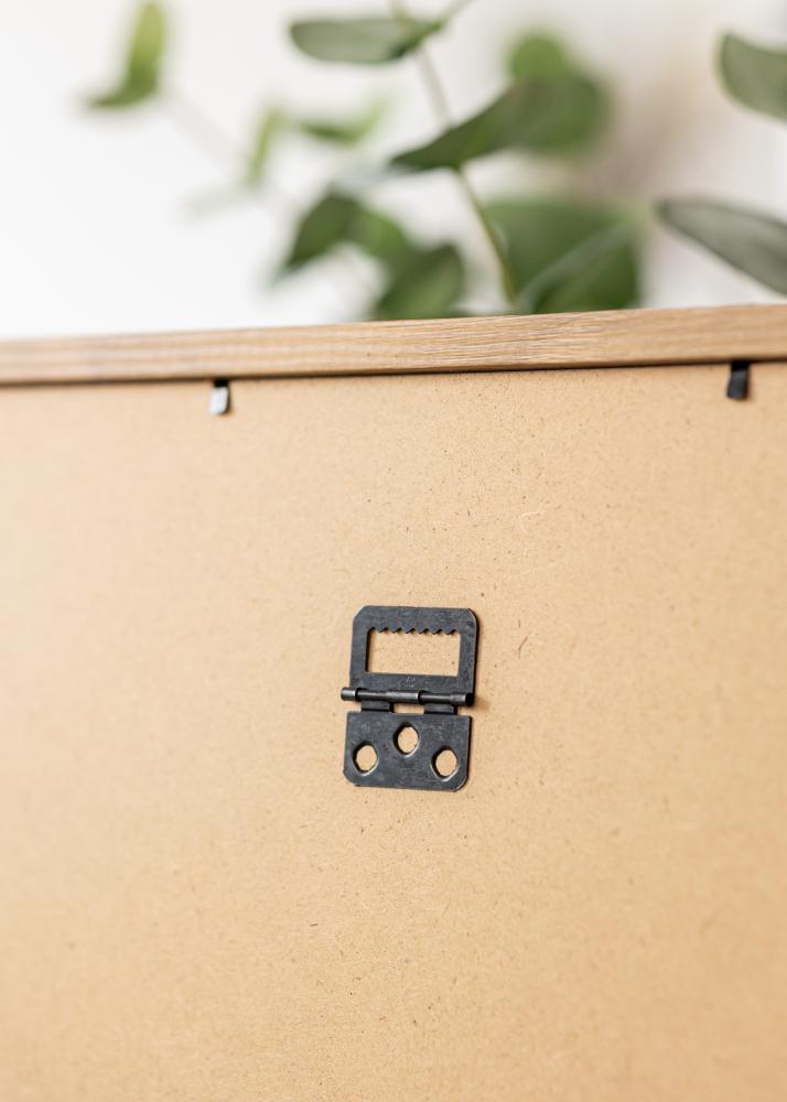 Ramen är utrustad med metallhängare på baksidan, vilket gör det enkelt att hänga den både horisontellt och vertikalt. Det kristallklara och splitterfria akrylglaset ger en säker och tydlig visning av dina bilder. Kom ihåg att ta bort skyddsfilmen på båda sidor av glaset innan du använder ramen för bästa resultat.