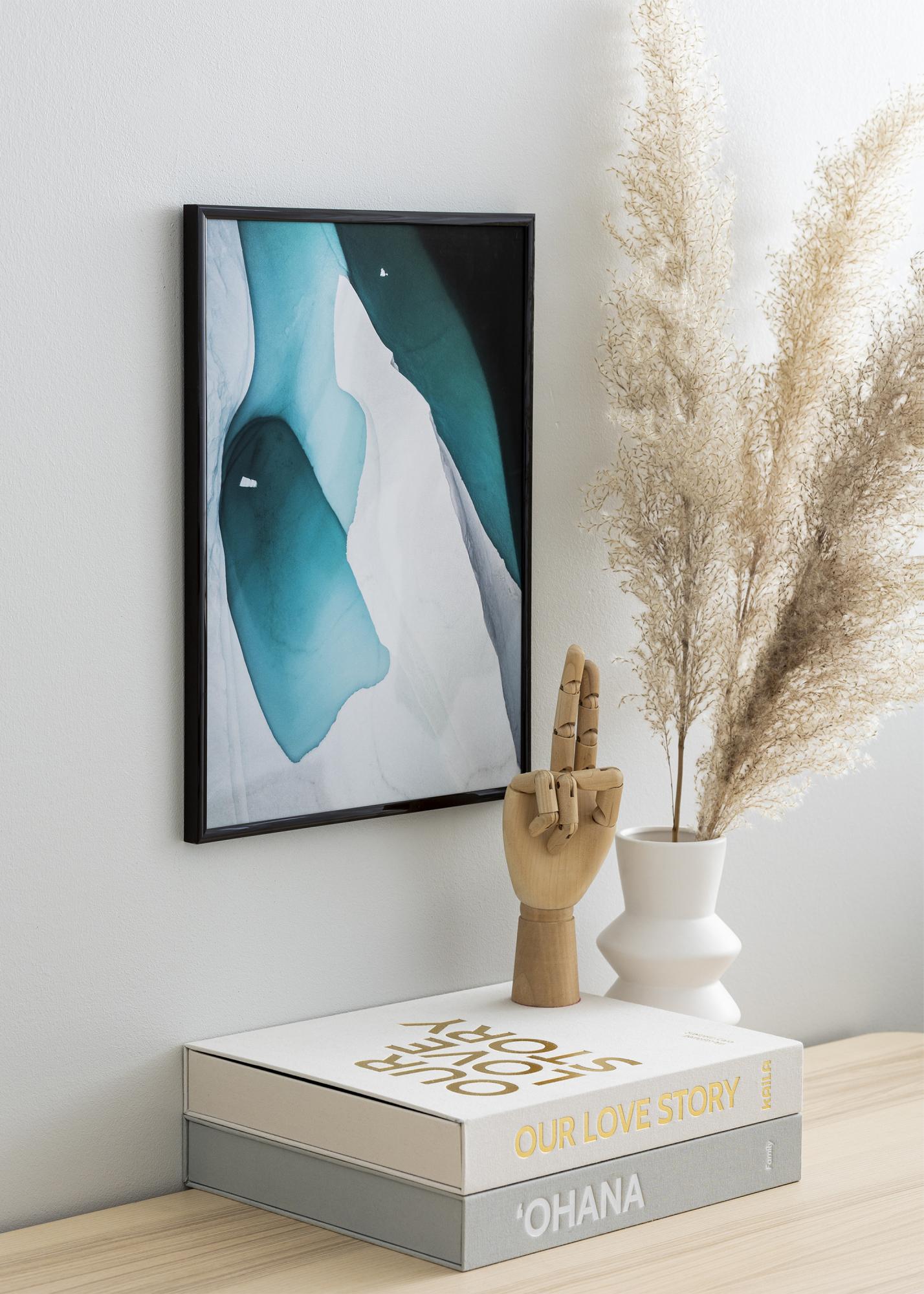 Ramen, med sina slanka mått på 9,8 mm i bredd och 16,5 mm i djup, har en blank yta som tillför en subtil glans till din väggdekoration. Dessutom är ramen utrustad med praktiska metallhängare på baksidan, vilket gör det möjligt att hänga upp din bild både horisontellt och vertikalt, anpassat efter motivets orientering och ditt personliga stilval.