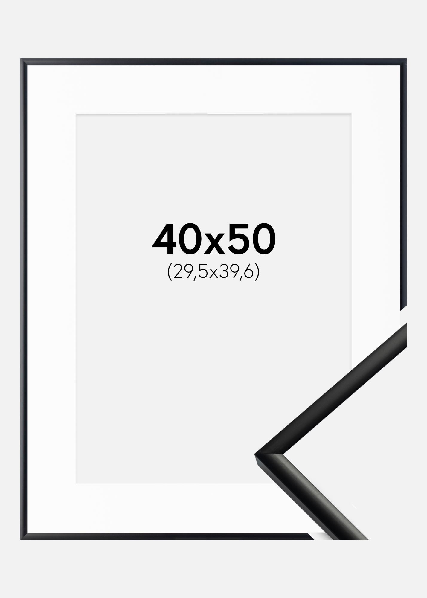 Ramen har en slank profil med en bredd på endast 9,8 mm och ett djup på 16,5 mm, vilket ger en stilren och modern look. Den matta svarta finishen kompletterar den vita passepartouten som följer med, vilket skapar en vacker kontrast och drar ögat mot bilden i mitten.