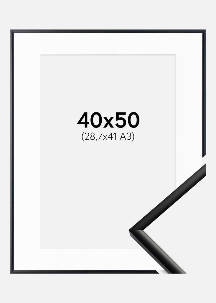 Ram New Lifestyle Matt Svart 40x50 cm - Passepartout Vit 29,7x42 cm (A3)