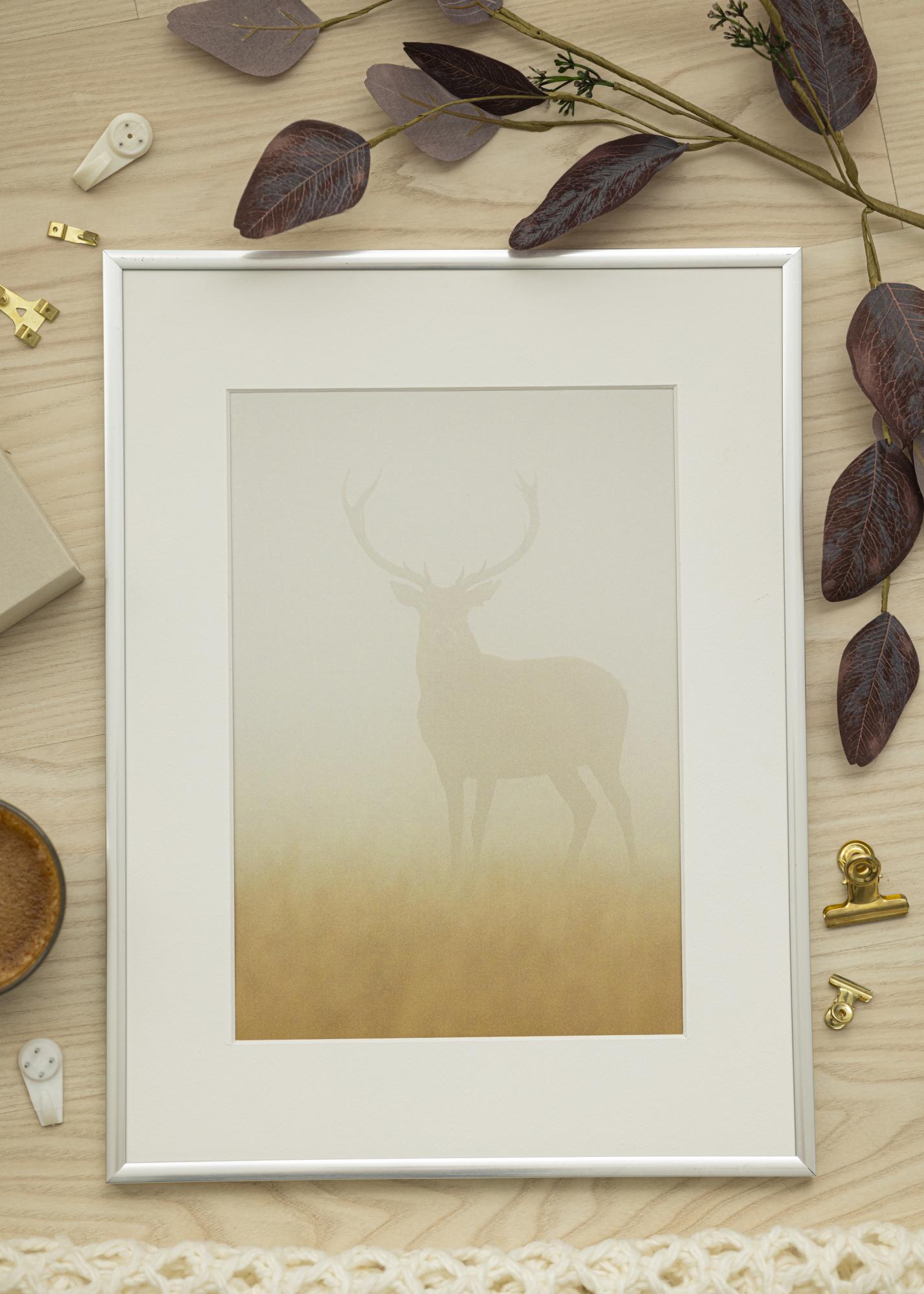 Förvandla dina bilder till konstverk med vår eleganta silverfärgade ram, komplett med en stilren vit passepartout. Denna ram är perfekt för att framhäva dina 8x10 cm bilder och ge dem en sofistikerad inramning. Med en matt finish och en smal bredd på 9 mm, erbjuder denna ram en modern och minimalistisk känsla som passar in i de flesta inredningsstilar.
