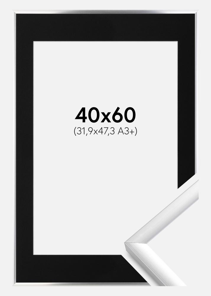 Ram New Lifestyle Silver 40x60 cm - Passepartout Svart 32,9x48,3 cm (A3+)