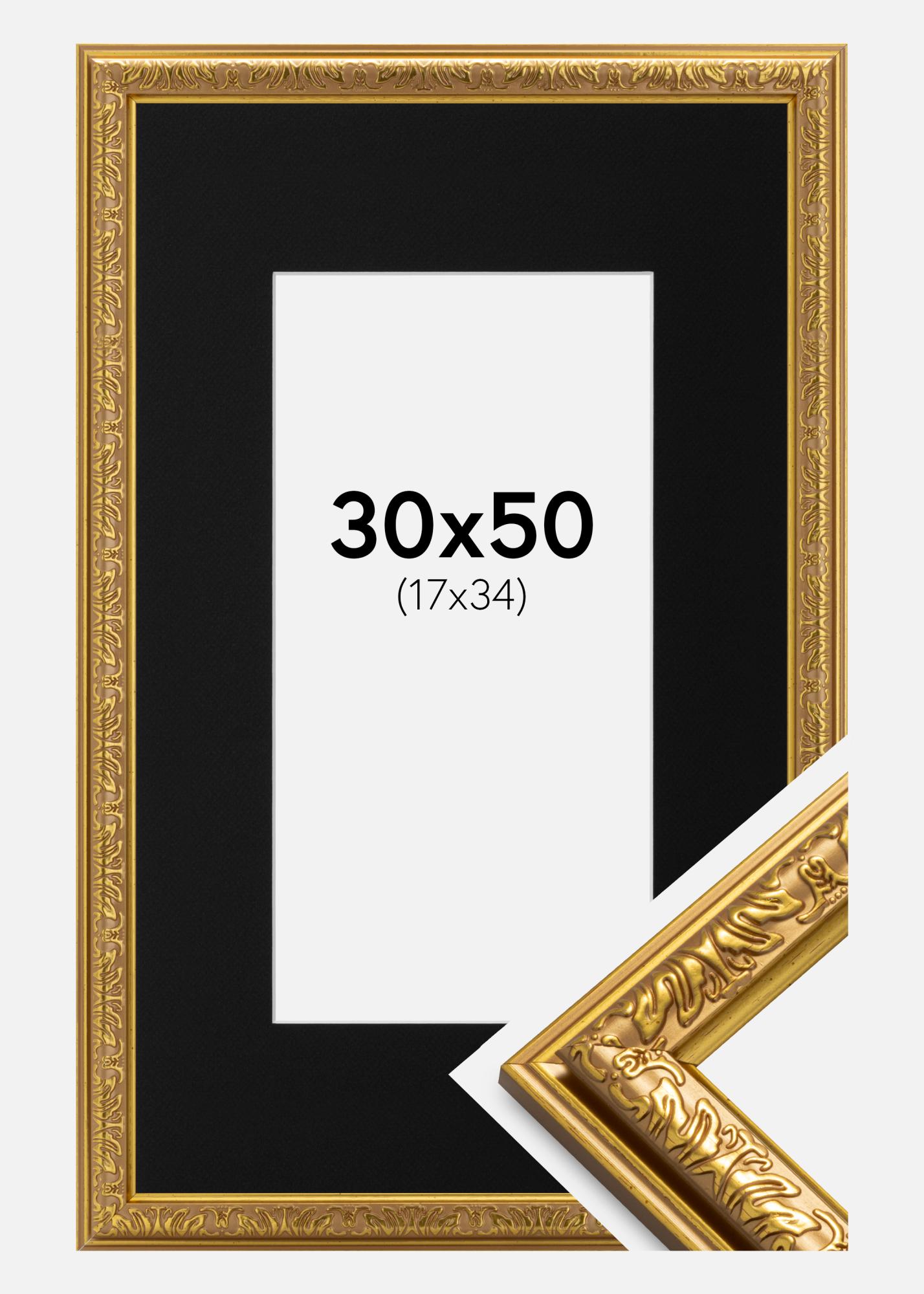 Ram Nostalgia Guld 30x50 cm - Passepartout Svart 18x35 cm