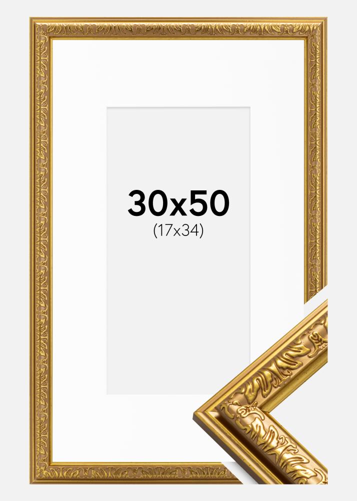 Ram Nostalgia Guld 30x50 cm - Passepartout Vit 18x35 cm
