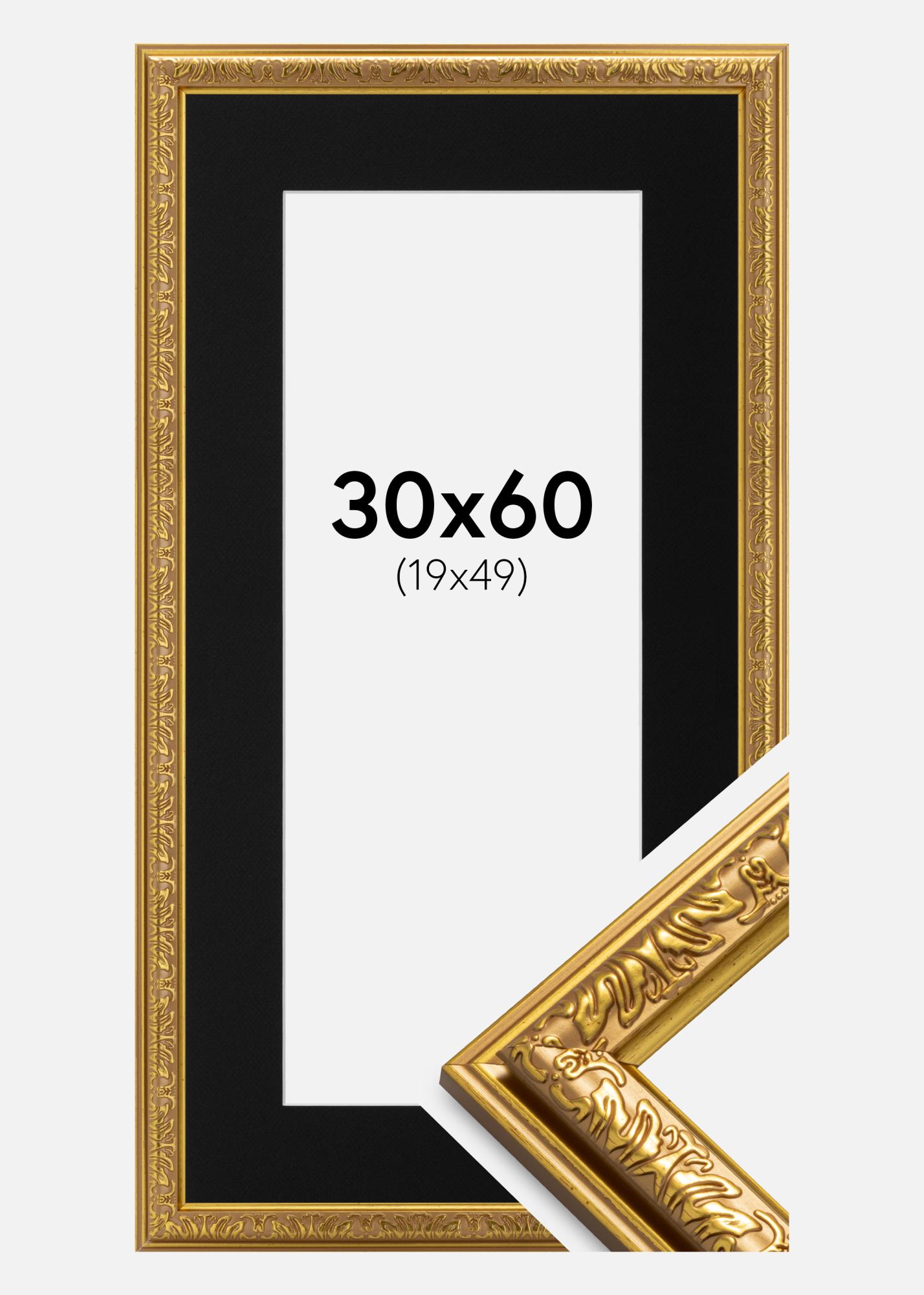Ram Nostalgia Guld 30x60 cm - Passepartout Svart 20x50 cm