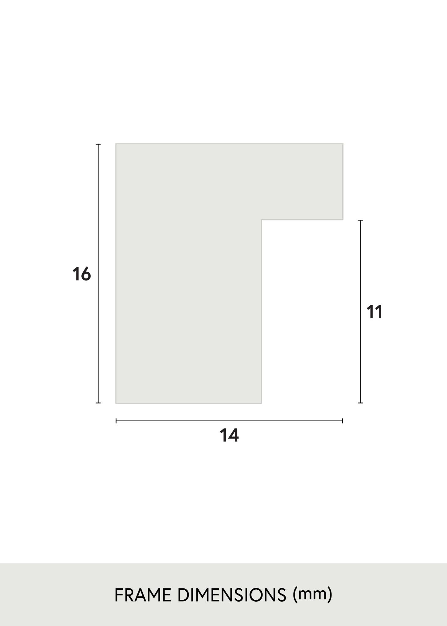Ramen har en smal ramlist på 16 mm och ett djup på 14 mm, vilket ger en diskret men ändå tydlig inramning. De rena linjerna och den släta finishen gör denna tavelram till ett utmärkt val för skandinaviska och minimalistiska hem, men den fungerar lika bra i mer eklektiska inredningar.