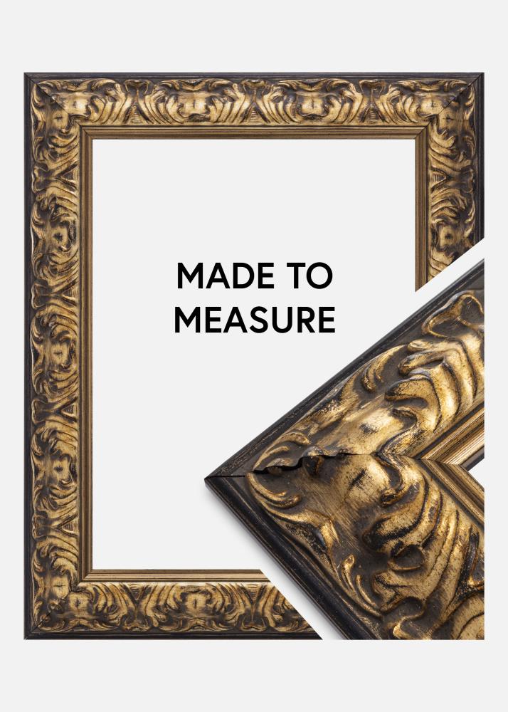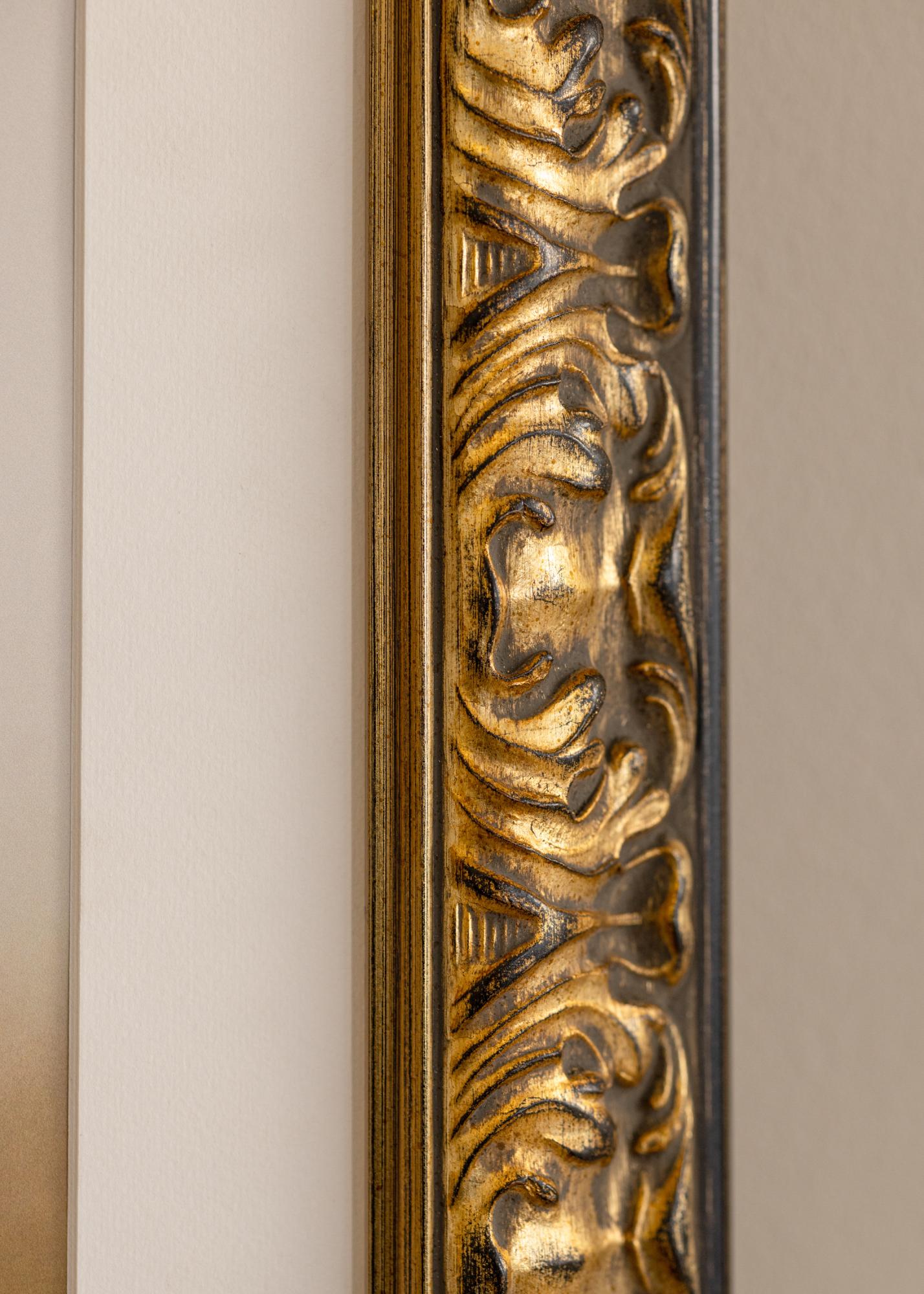 Vår måttbeställda tavelram Odin i guld och svart är det perfekta valet för dig som söker en elegant och klassisk inramning. Med sin guldfinish och svarta inslag erbjuder denna fotoram en antik känsla som förhöjer varje konstverk eller fotografi. Den ornamenterade designen skapar en vacker kontrast mellan det varma guldet och de djupa svarta detaljerna, vilket ger en stilfull och traditionell look.