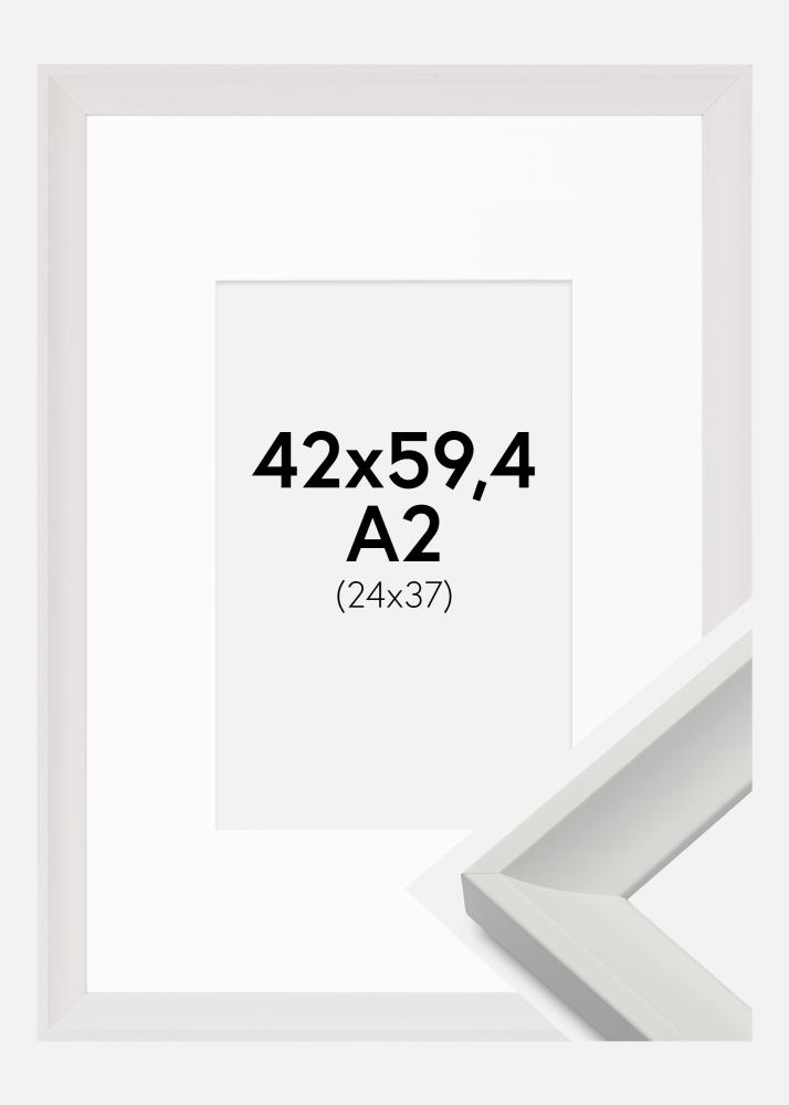 Upplev den eleganta enkelheten med vår vita ram med passepartout, perfekt för att framhäva din bild i storleken 25x38 cm. Den matta finishen och den rena vita färgen skapar en sofistikerad inramning som kompletterar alla motiv.