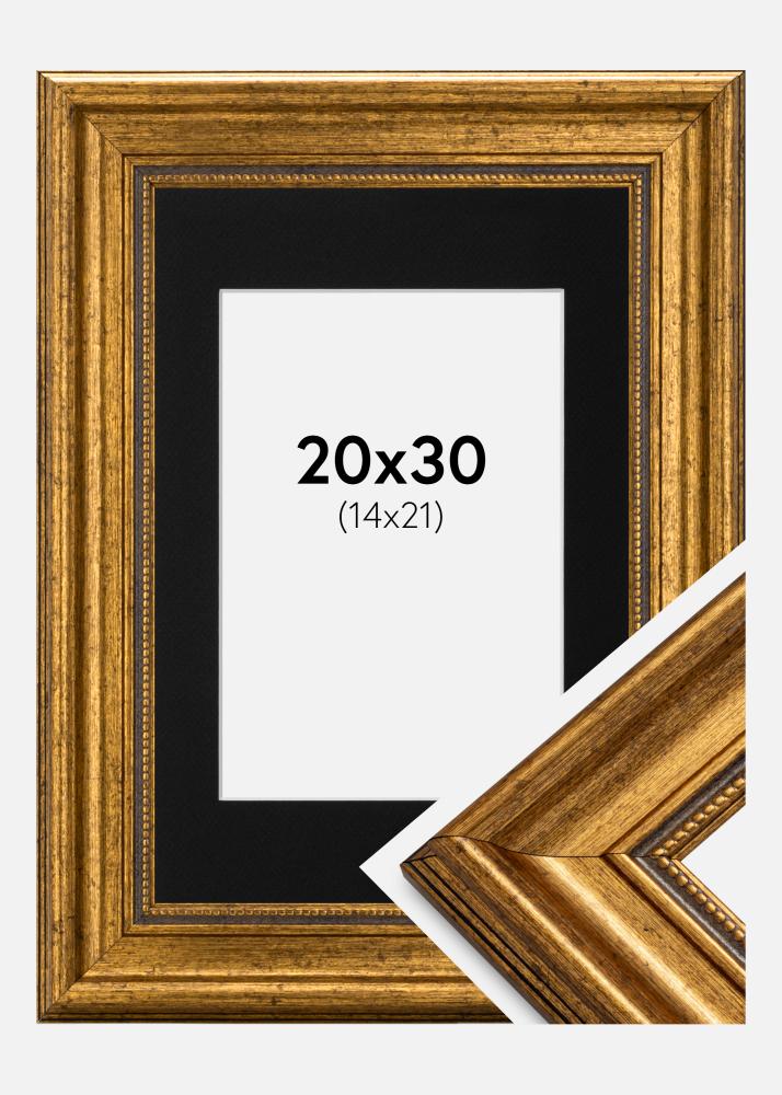Ram Rokoko Guld 20x30 cm - Passepartout Svart 15x22 cm