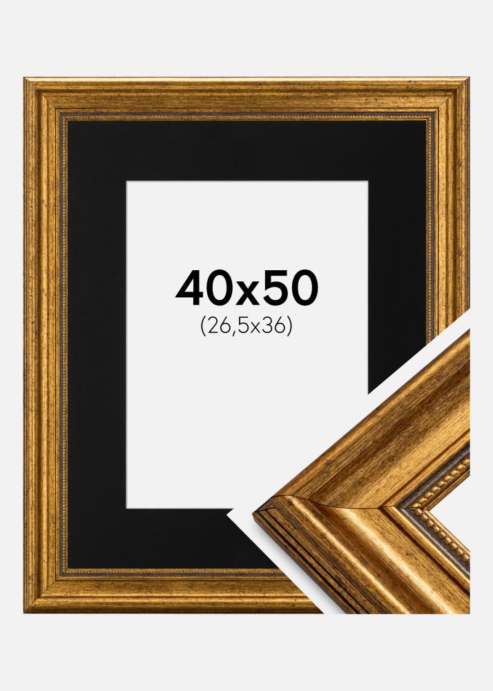 Ram Rokoko Guld 40x50 cm - Passepartout Svart 27,5x37 cm