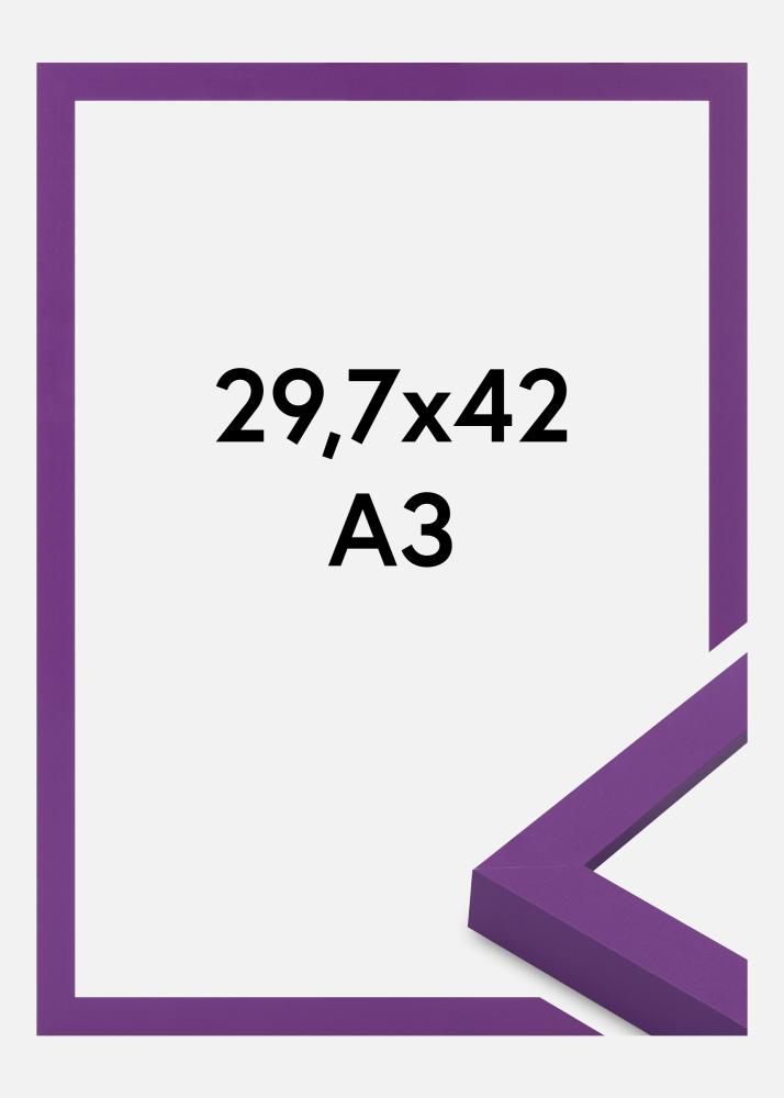Denna lila tavelram är perfekt för att framhäva dina favoritmotiv i storleken 29.7x42 cm (A3). Med en modern och stilren design erbjuder den en slät, matt yta som ger motivet en tydlig och harmonisk inramning. Den smala profilen och de raka hörnen skapar ett avskalat uttryck som låter bilden stå i centrum, vilket gör den till ett utmärkt val för både personliga fotografier och grafiska posters.