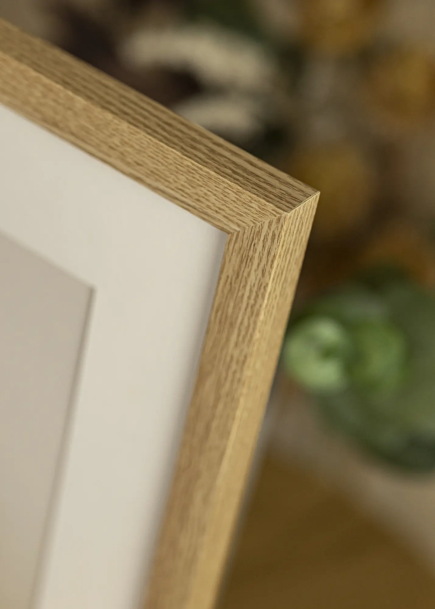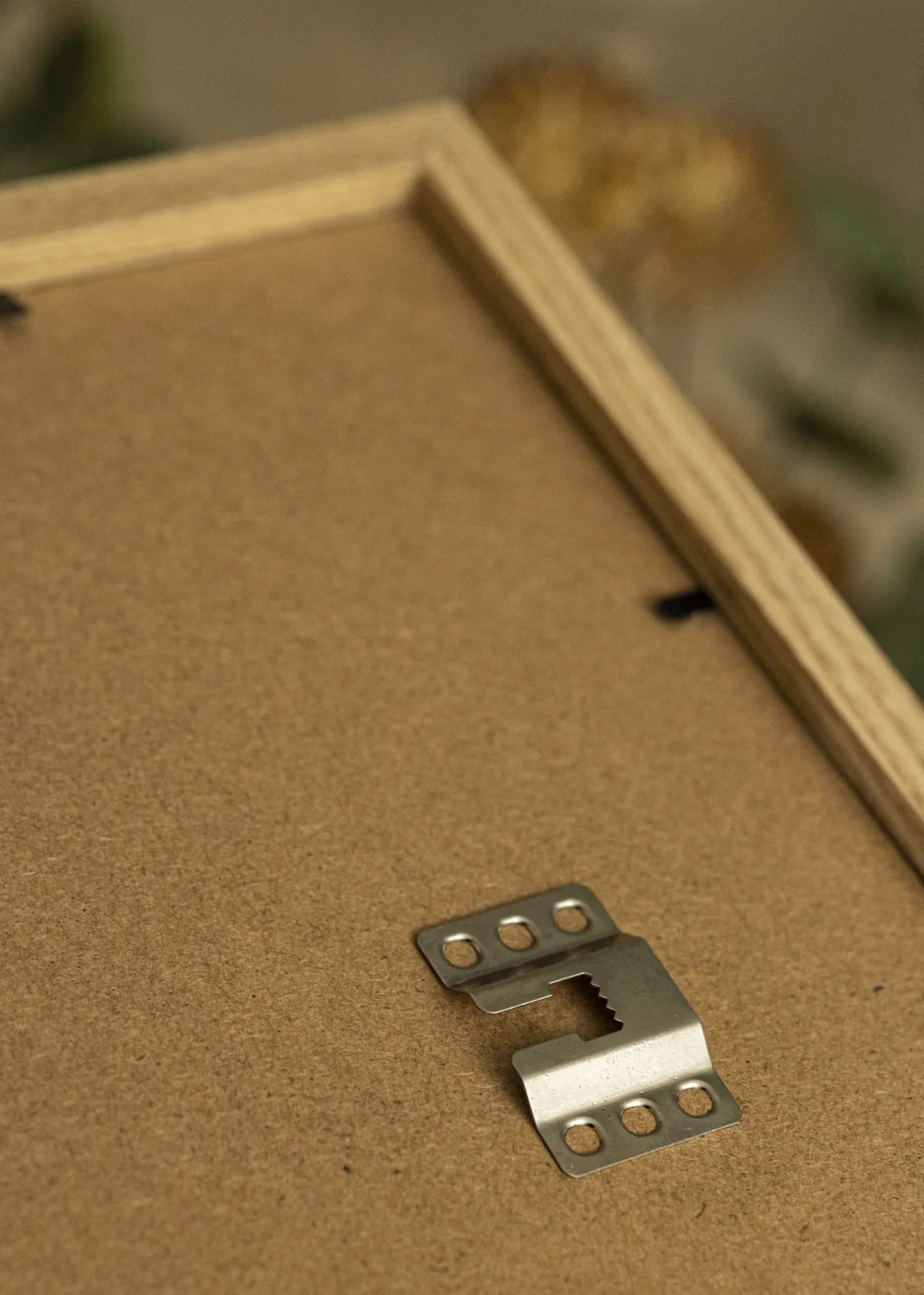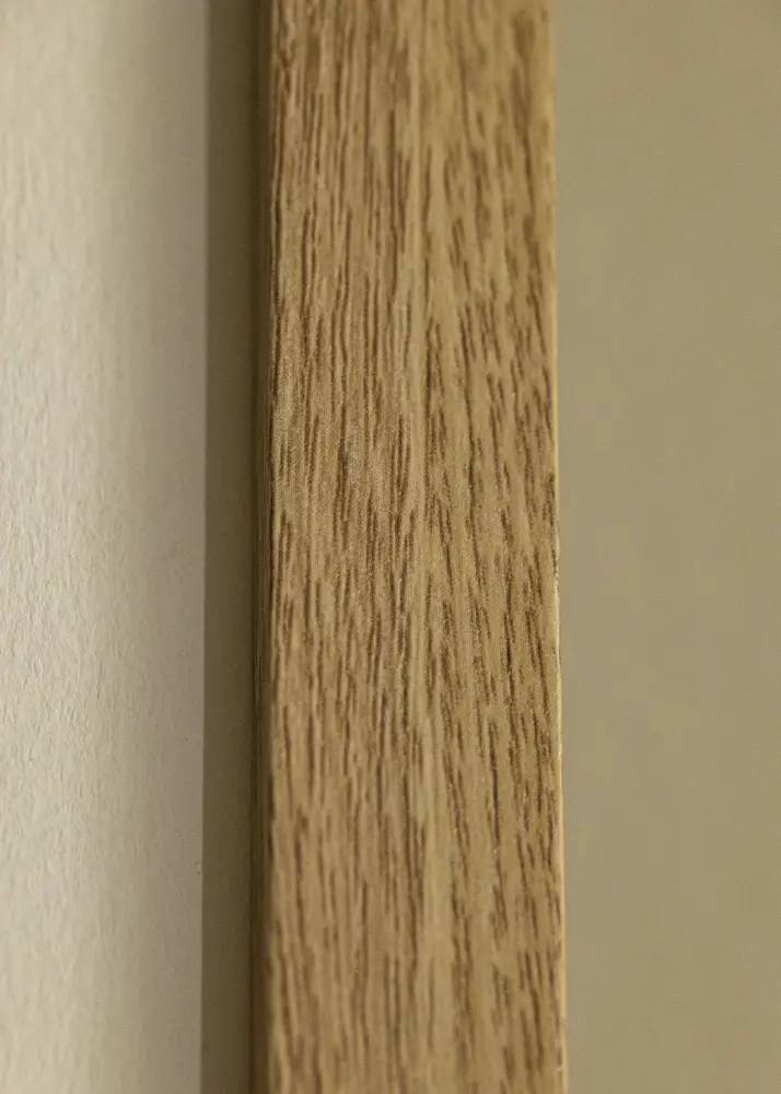 Detta är en ram med en 18 mm bred och djup list med klassisk fyrkantig profil och en vacker yta med trästruktur. Den naturnära framtoningen gör att ramen passar utmärkt till naturmotiv eller moderna bilder som får stå i kontrast till tavelramen. Motiven monteras in i ramen med hjälp av böjbara stift på ramens baksida.