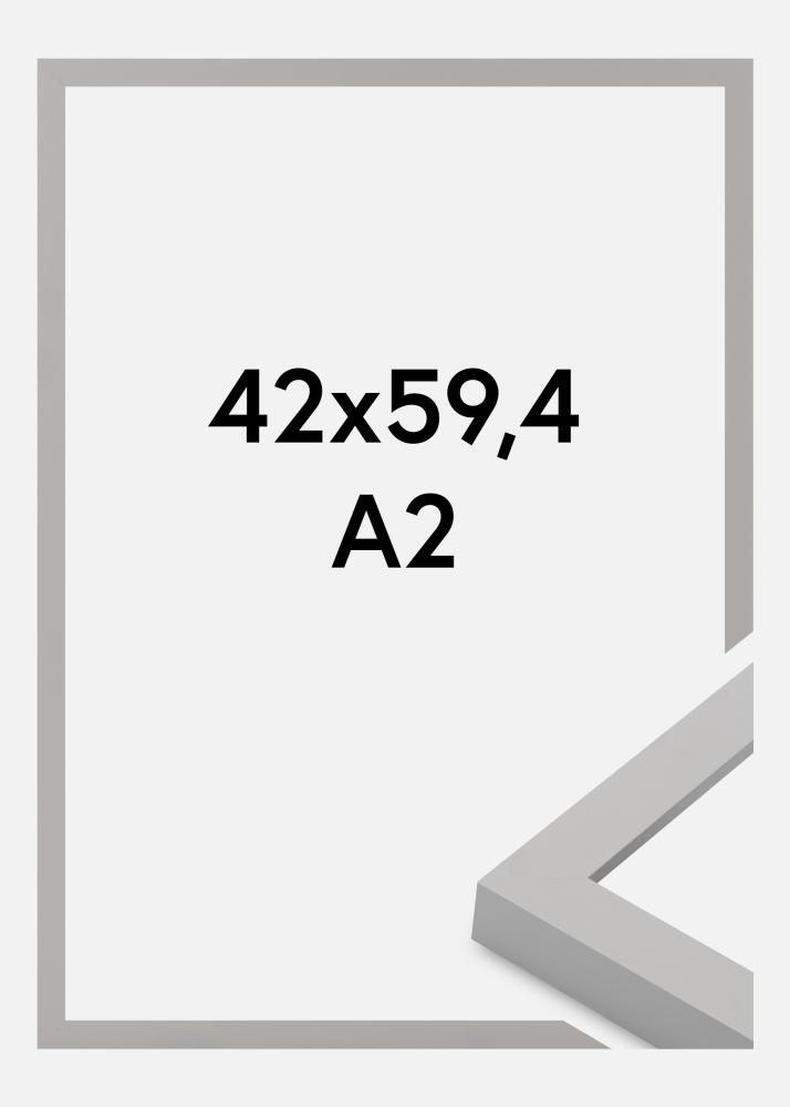 Denna stilrena fotoram i grått trä är perfekt för att framhäva dina favoritmotiv. Med en storlek på 42x59.4 cm passar den utmärkt för A2-format, vilket gör den idealisk för både personliga fotografier och grafiska posters. Den matta ytan och den smala profilen ger en modern och avskalad känsla som låter bilden stå i centrum.