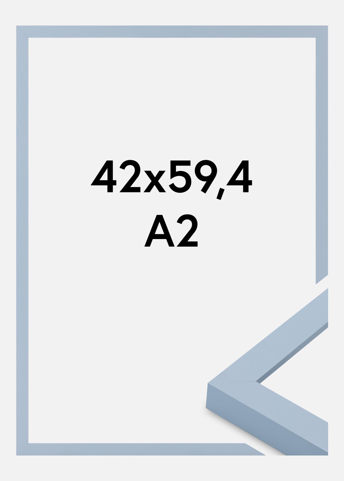 Denna moderna fotoram i blått är perfekt för att framhäva dina favoritmotiv. Med en storlek på 42x59.4 cm (A2) passar den utmärkt för både personliga fotografier och stilrena posters. Den matta ytan och den smala profilen ger en elegant och avskalad inramning som låter bilden stå i centrum.