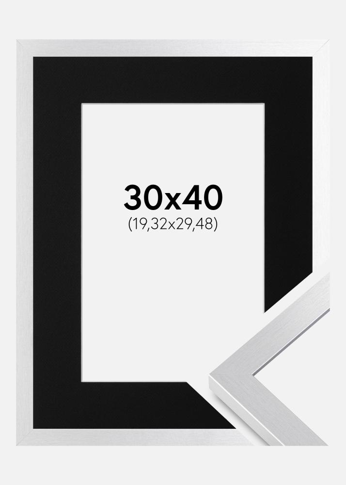 Ram Selection Silver 30x40 cm - Passepartout Svart 8x12 inches