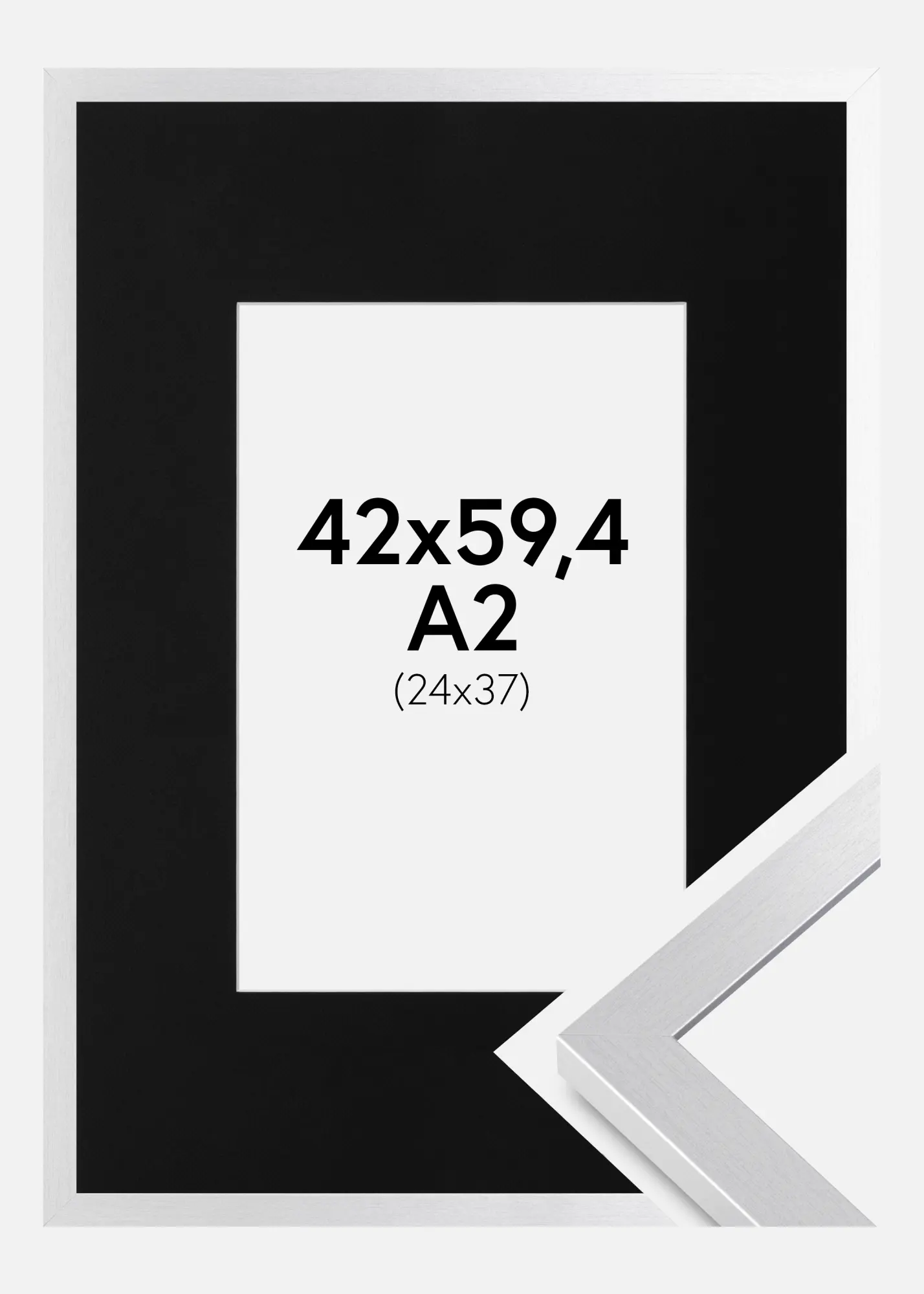 Ram Selection Silver 42x59,4 cm (A2) - Passepartout Svart 25x38 cm