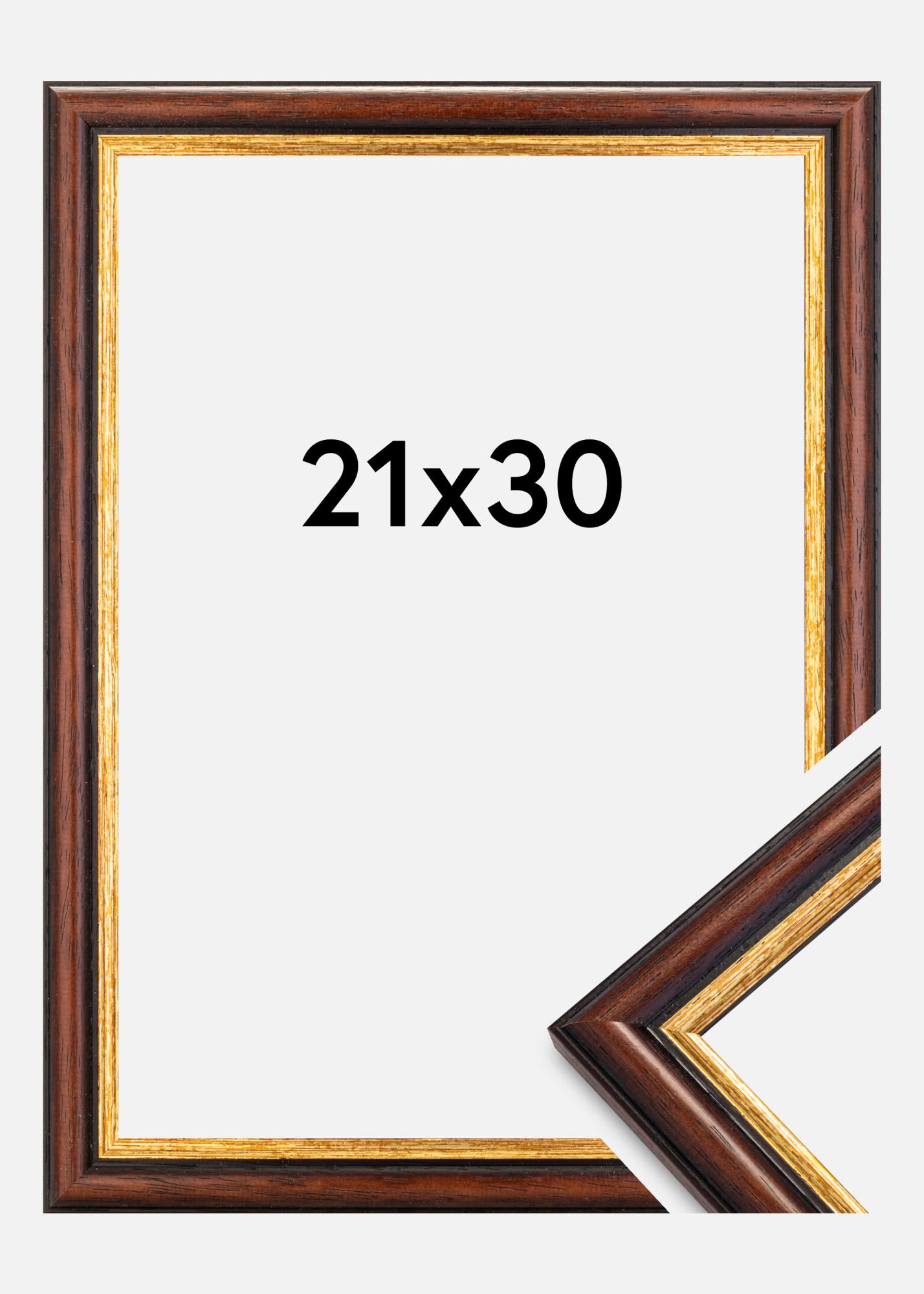 Låt denna ram bli en fin inredningsdetalj i ditt hem. Ramen är tillverkad i Sverige, av högklassigt ayosträ målat i en varm brun färg. Den bruna nyansen kompletteras av en elegant guldrand närmast din bild, för att ge ett extra elegant helhetsintryck. Ramen har en klassisk framtoning, som enkelt kan matchas med många olika motiv. Kanske vill du använda den tillsammans med ett klassiskt fotografi för att höja den traditionella känslan? Eller kommer denna fotoram bli en häftig kontrast till ett mer modernt motiv?