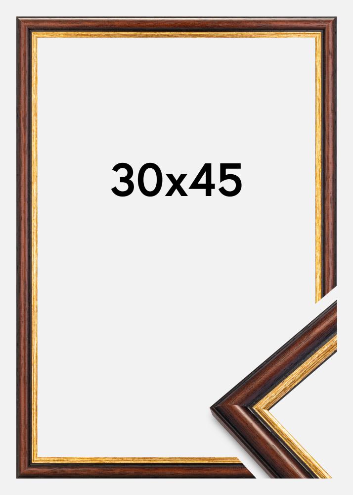 Låt denna ram bli en fin inredningsdetalj i ditt hem. Ramen är tillverkad i Sverige, av högklassigt ayosträ målat i en varm brun färg. Den bruna nyansen kompletteras av en elegant guldrand närmast din bild, för att ge ett extra elegant helhetsintryck. Ramen har en klassisk framtoning, som enkelt kan matchas med många olika motiv. Kanske vill du använda den tillsammans med ett klassiskt fotografi för att höja den traditionella känslan? Eller kommer denna fotoram bli en häftig kontrast till ett mer modernt motiv?