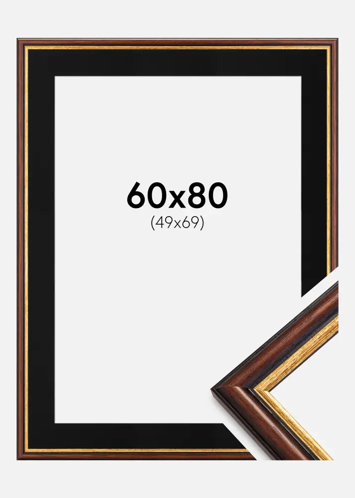 Ram Siljan Brun 60x80 cm - Passepartout Svart 50x70 cm