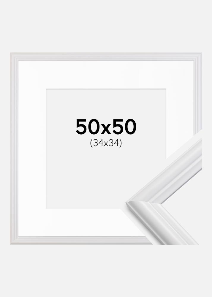 Ramen är utrustad med en matt finish som kompletterar den vita passepartouten och ger en sofistikerad touch till din väggdekoration. Ramens yttermått är 53,8x53,8 cm, vilket gör den till en markant men ändå balanserad del av din inredning.