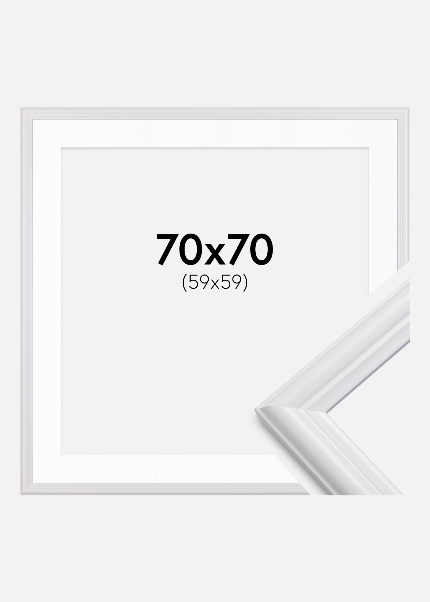 Ge dina favoritbilder den uppmärksamhet de förtjänar med en elegant vit ram komplett med passepartout. Denna sofistikerade ram är perfekt för att framhäva en 60x60 cm bild, omgiven av en vit passepartout som inte bara tillför ett visuellt andrum utan också skyddar din bild från att vidröra glaset. Ramens matta yta och diskreta bredd på 24 mm ger en stilren inramning som låter ditt konstverk stå i centrum.