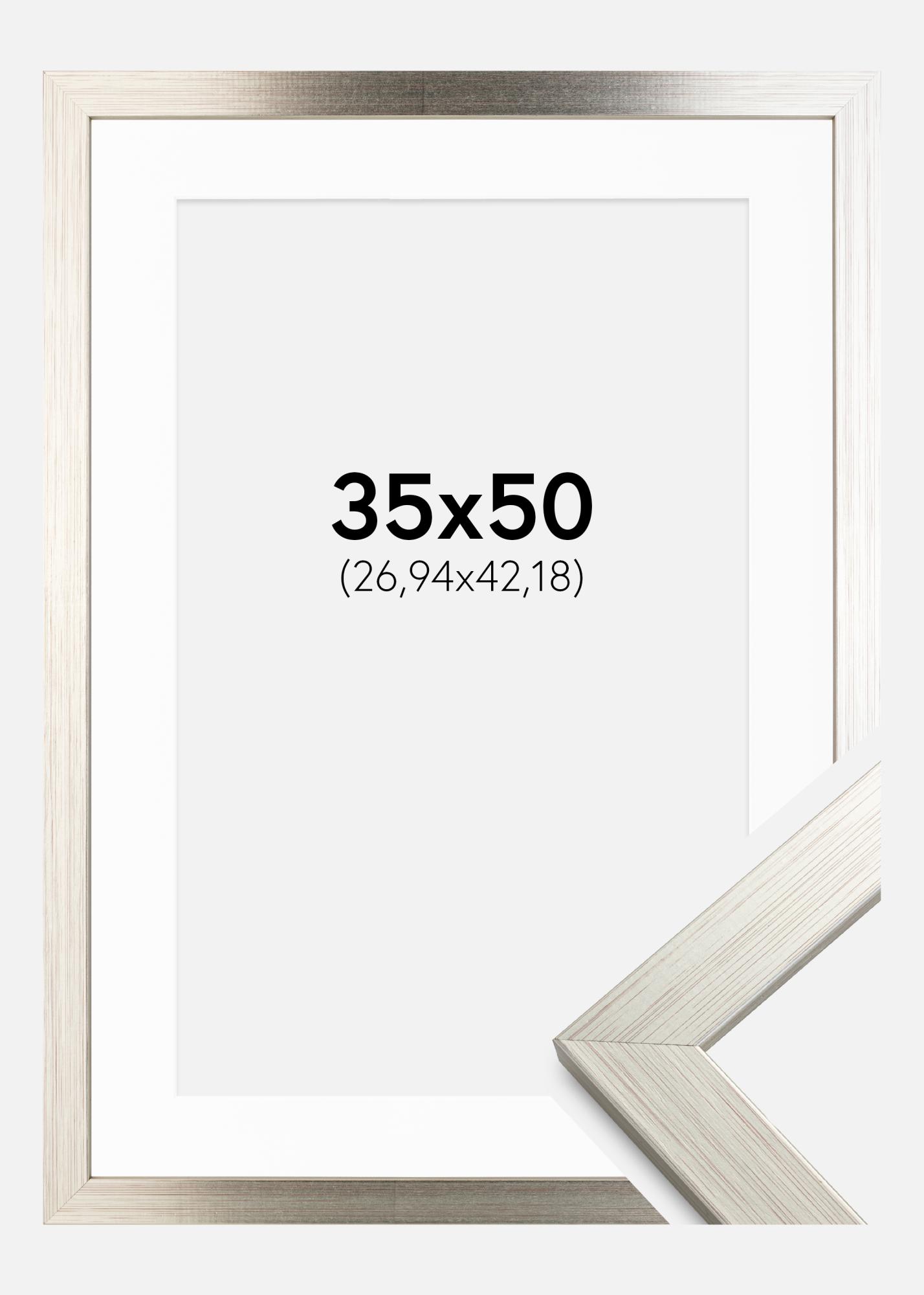 Ram Silver Wood 35x50 cm - Passepartout Vit 11x17 inches