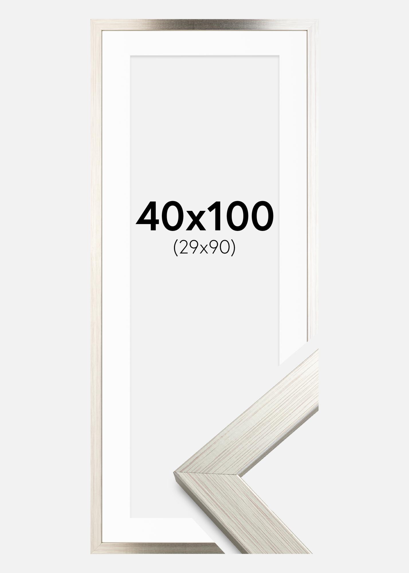 Ram Silver Wood 40x100 cm - Passepartout Vit 30x91 cm
