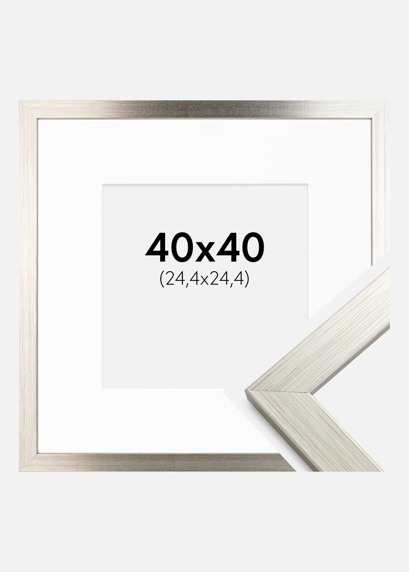 Ram Silver Wood 40x40 cm - Passepartout Vit 10x10 inches