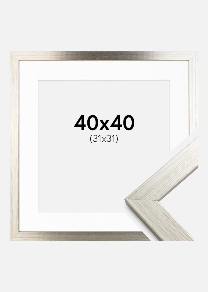 Ram Silver Wood 40x40 cm - Passepartout Vit 32x32 cm