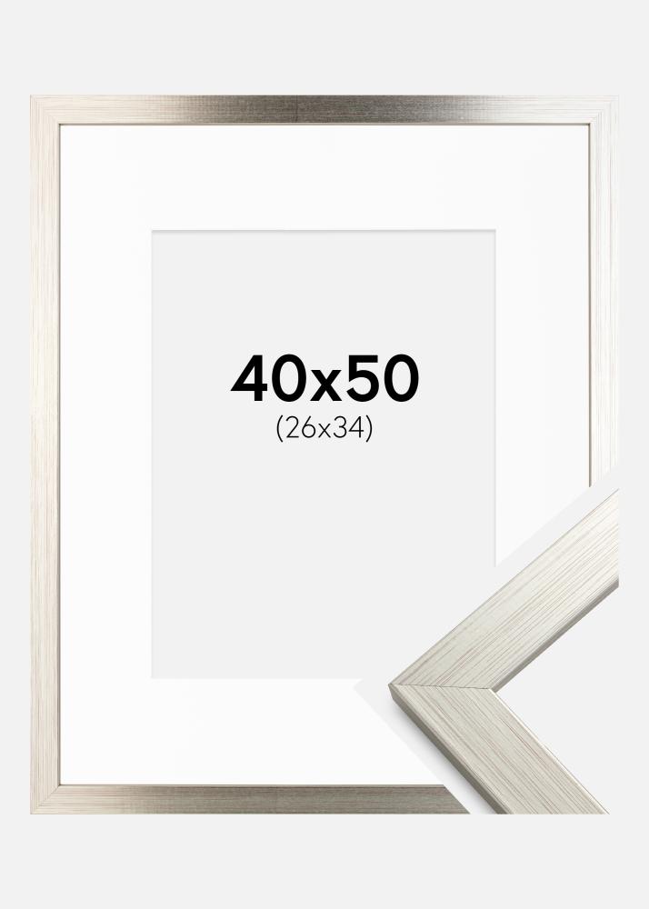 Skapa en elegant inramning av dina favoritbilder med denna sofistikerade silverfärgade ram med vit passepartout. Ramens matta finish och diskreta bredd på 22 mm ger en stilren kant som kompletterar alla typer av inredningsstilar. Med yttermåtten 43,4x53,4 cm är den perfekt för att framhäva din bild i storleken 27x35 cm.