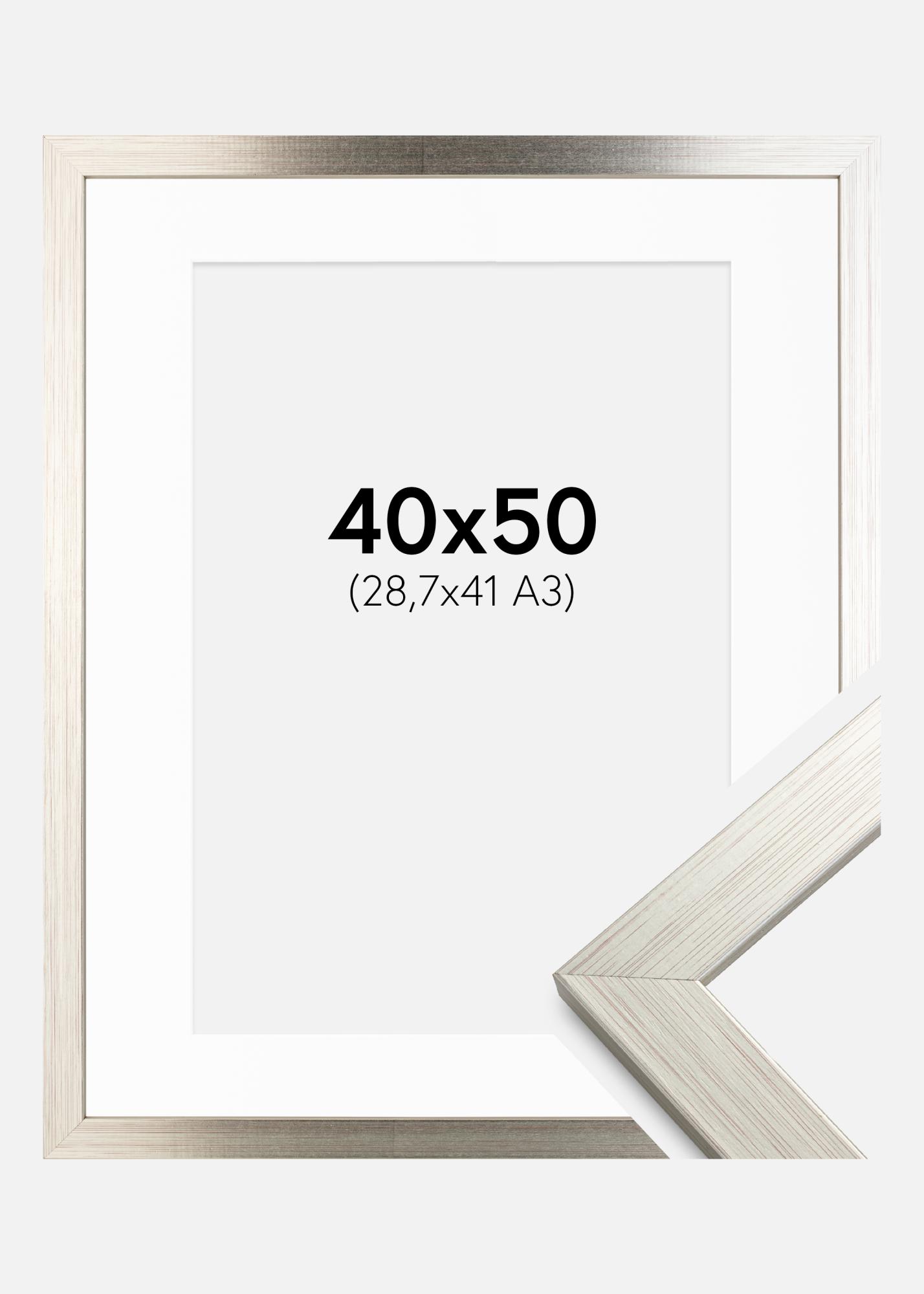 Ram Silver Wood 40x50 cm - Passepartout Vit 29,7x42 cm (A3)